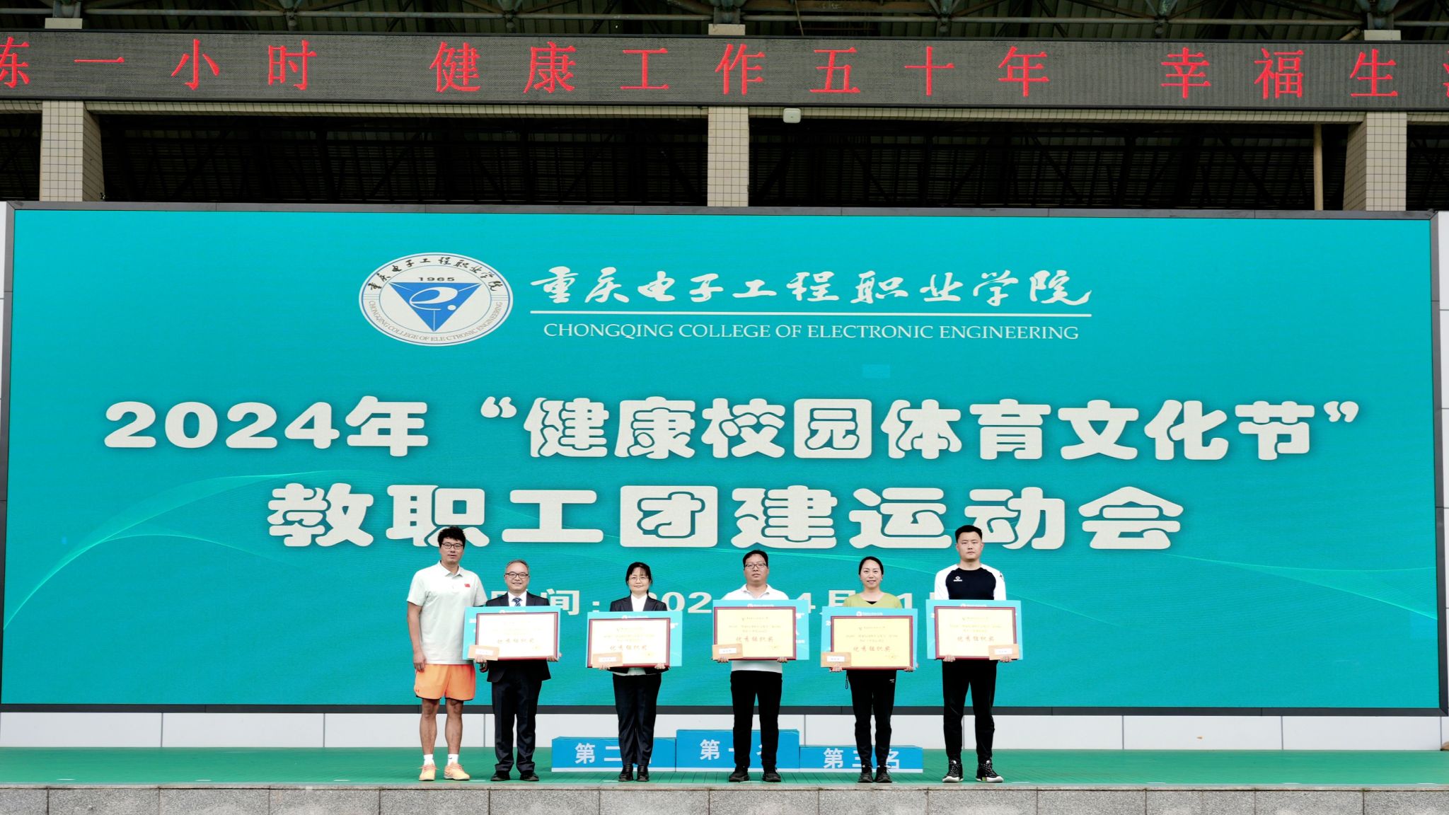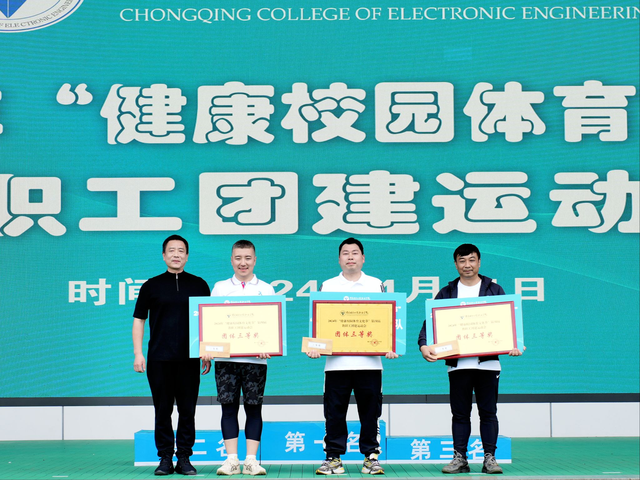 此次团建运动会,团体一等奖获得者为“国学书声”队,团体二等奖获得者为“电量”队、“友谊健康”队,团体三等奖获得者为“智数❤党”队、“财贸双全”队、“勤安横行建天下”队,优秀组织奖获得者为“迅猛”队、“智造同心”队、“龙马”战队、“纪检国通”队、“马到成功”队。