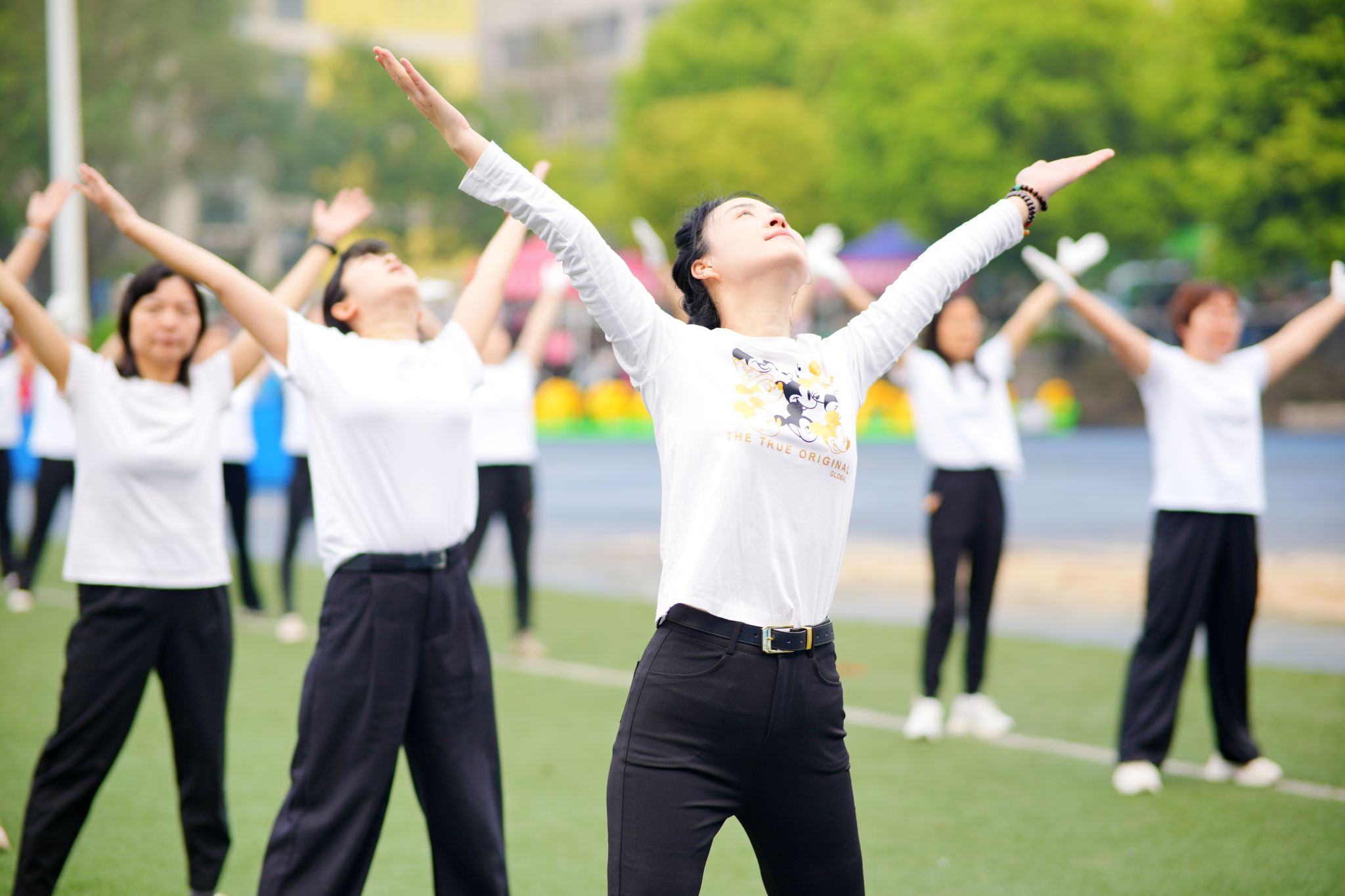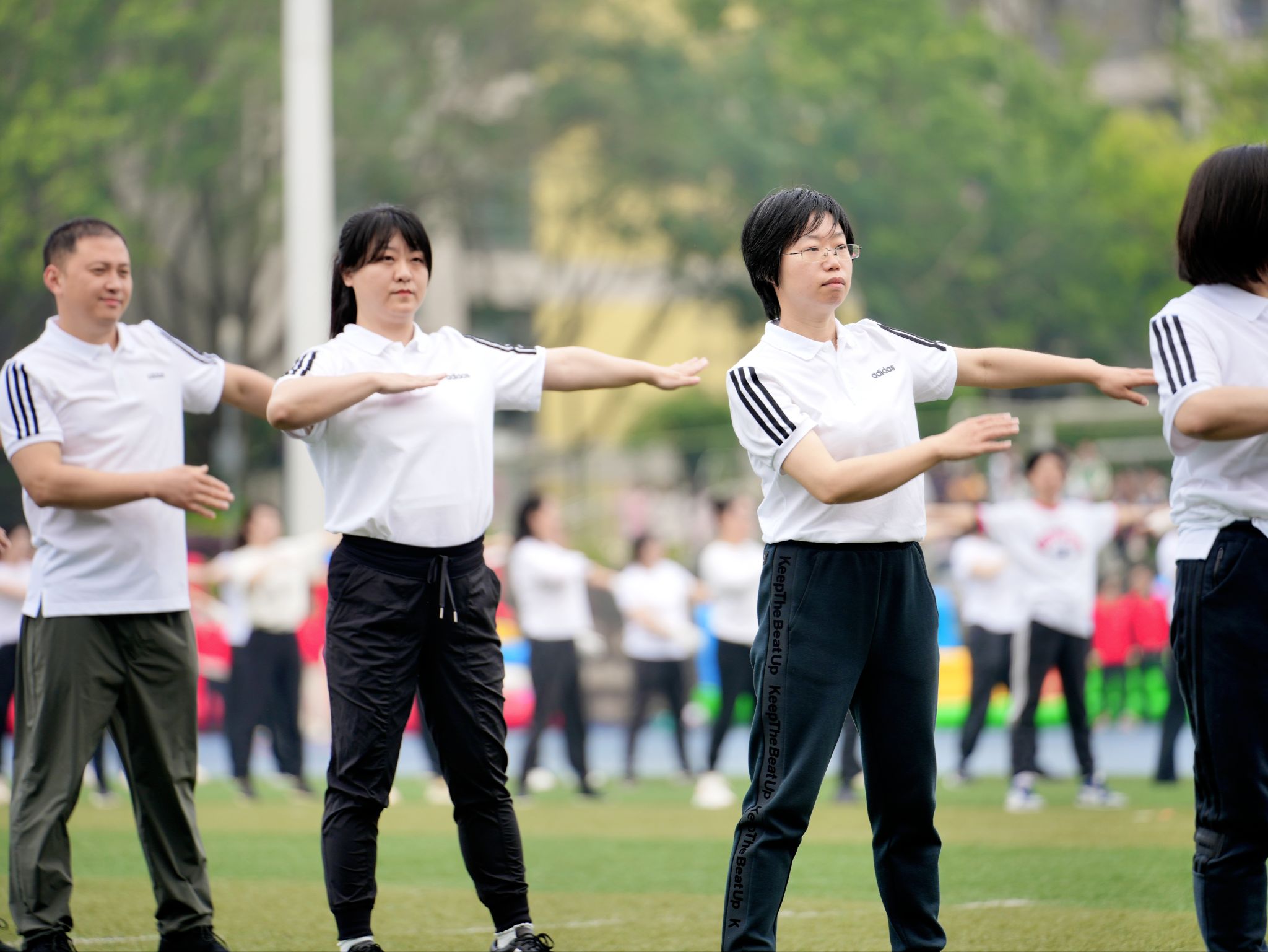 开幕式后,分工会教职工代表列队展示了第九套广播体操。