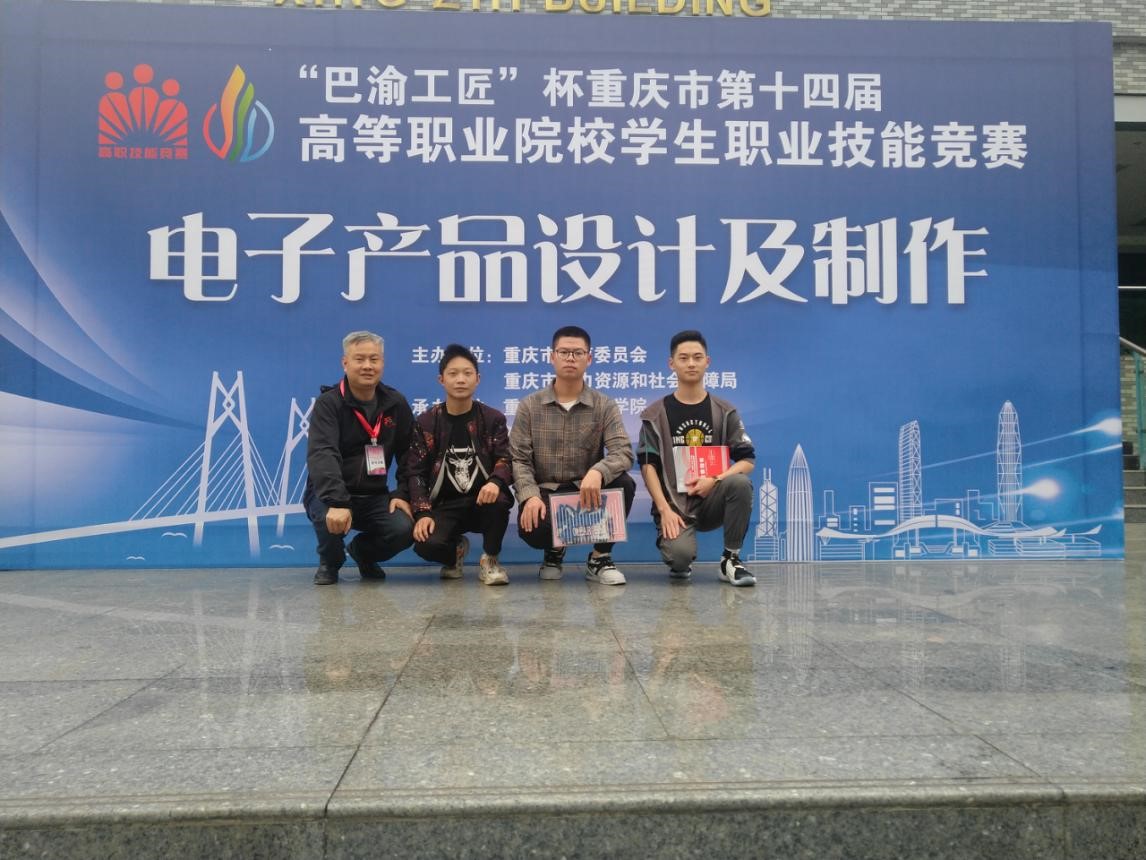 本次比赛,全市共有14个职业院校,27个代表团队的81名选手成功报名参赛。电子与物联网学院专业主任蔡运富、童瑞君老师共同指导,智能电子产品设计工坊优秀学员马金桥、龙朝光、王明元三位学员组队代表出战。他们凭借娴熟的技能、扎实的基本功和超强的心理素质,荣获重庆市一等奖的优异成绩。