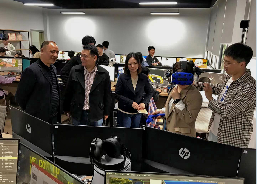 随后,数字媒体学院刘晓东院长的陪同下参观了重电曼恒产业学院曼恒班授课现场,就开云电子平台_开云(中国)、校企深入合作等事宜展开交流。授课教师向大家展示虚拟现实仿真技术,就如何运用专业特色、推进专业发展、提升开云电子平台_开云(中国)质量、深化产教融合等问题进行深入沟通。