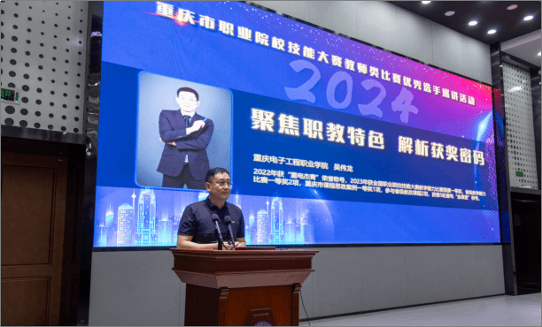 为弘扬践行新时代教育家精神,进一步发挥全国职业院校技能大赛教师类比赛优秀选手的示范引领作用,深入推进“三教”改革,整体提升全市职业院校教师教学能力、数字素养、教学设计水平,以“躬耕教坛·强国有我·以赛促教·良匠之师”为主题的重庆市职业院校技能大赛教师类比赛优秀选手第一场巡讲活动于2024年4月22日下午在重庆电子工程职业学院博远厅成功举行。重庆市教育科学院教研员付勇,重庆电子工程职业学院党委委员、副校长谢义华,教务处处长童世华,2023年全国职业院校技能大赛教学能力比赛一等奖团队代表重庆工商职业学院甘诗源、重庆电子工程职业学院吴伟龙,以及重庆市28所高职院校280余名教师代表出席了会议,会议由重庆电子工程职业学院王聃黎老师主持。