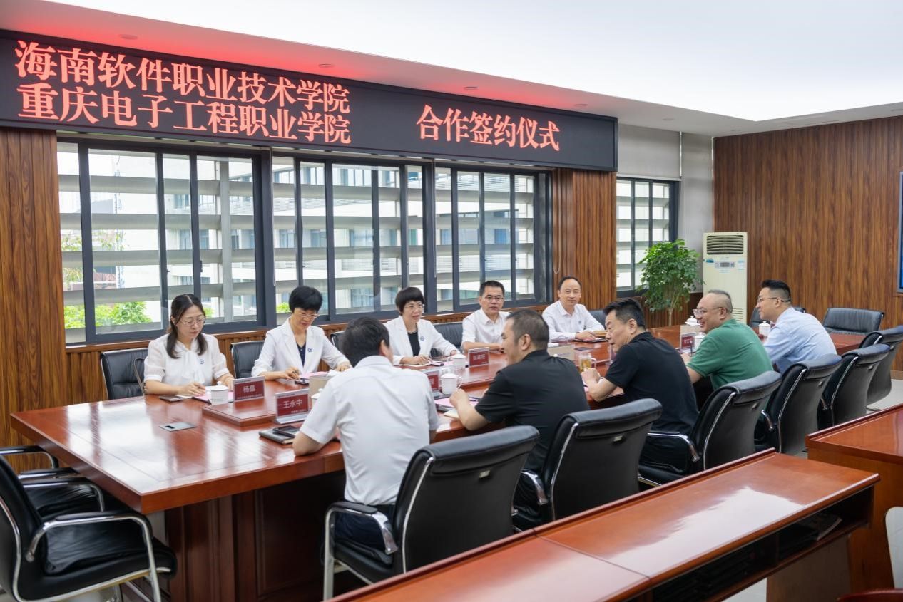 孙卫平在会上介绍了我校的基本情况和下一步的工作重点,表示两校同属电子信息类院校,互相帮助学习更有利于优势互补、通力合作,适应今后职业教育的快速发展。海南软件职业技术学院党委书记陈晖阳对该校的发展规划进行了介绍,提出希望通过两校紧密合作、深度共建,推动双方取得更大成绩。