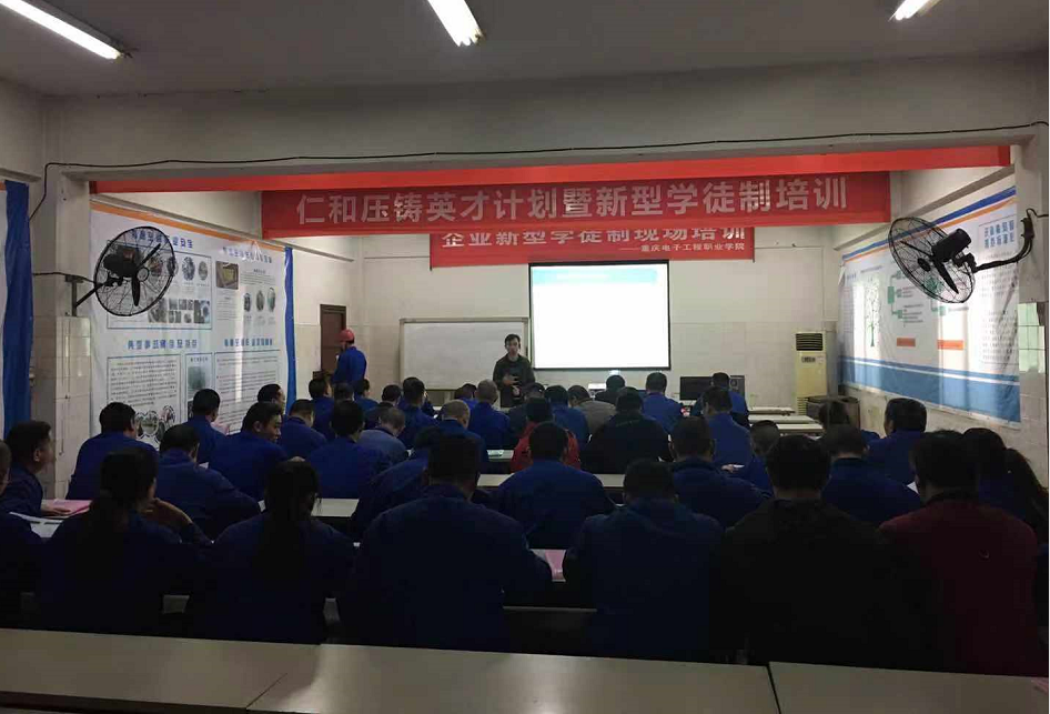 为组织好留岗和调休不歇班职工(含在企业工作的劳务派遣人员),努力实现“留岗一人、培训一人”,我校培训团队教师先后到重庆宇海科技有限公司、重庆市渝江压铸有限公司、重庆市仁和压铸有限公司、重庆凌达压缩机有限公司等几家公司开展企业新型学徒制培训和在岗技能提升培训。