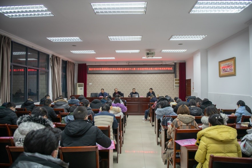 2021年1月24日上午,重庆市2020年度精准扶贫项目武隆职业教育中心第二阶段(文化课、专业课)教师职业能力提升培训班在我校南校区1-101室举行,武隆职业教育中心党总支书记、校长陈晓平,党总支副书记颜益龙,培训与继续教育中心主任陈志军,以及来自武隆职业教育中心的50名学员参加开班式,开班式由国培基地办副主任张亚主持。