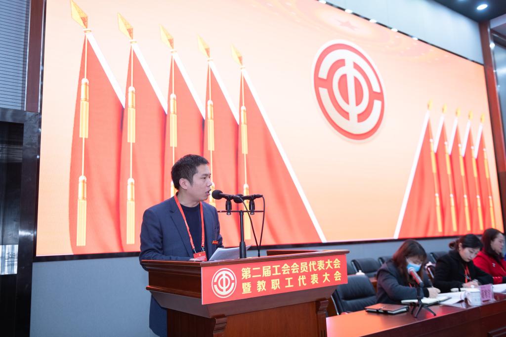 副校长、工会主席谢义华向大会作了第一届工会教代会工作报告。报告以“凝心聚力,和谐共进,团结带领广大教职工为实现学校教育事业高质量发展建功立业”为主题,从工会教代会履行教育职能、维护职能、参与职能、建设职能、加强自身建设等五个方面回顾了第一届工会教代会的工作和取得的成就;从坚持党对工会教代会工作的领导、发挥桥梁纽带作用、为实现“重电梦”而奋斗、高举维权服务旗帜、坚持改革创新与时俱进等角度总结了第一届工会教代会工作积累的宝贵经验;并对今后工会教代会工作进行了展望。