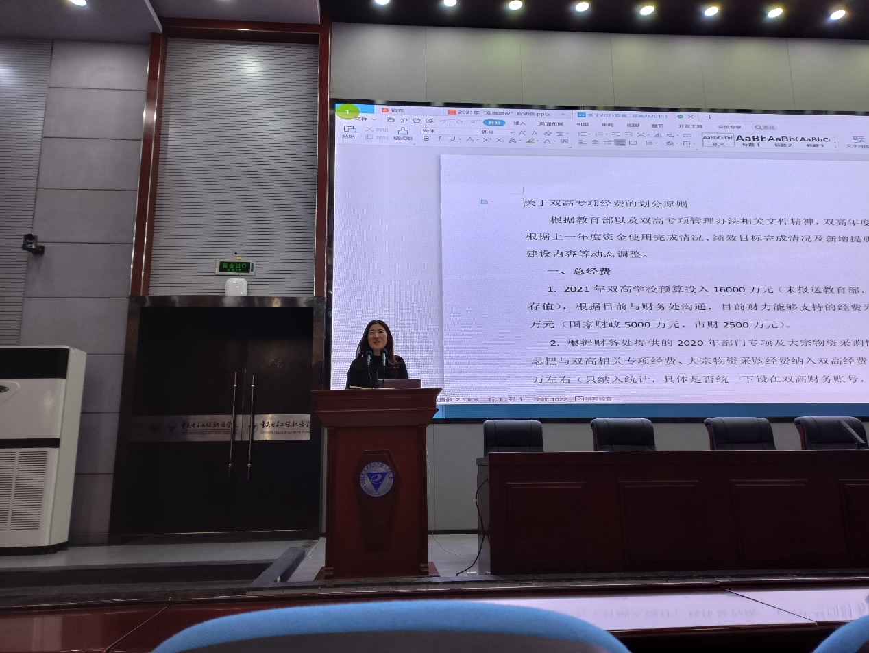 启动会上,财务资产处杨建勇处长对2021年度学校初步拟订的整体财务划块做了说明;双高办常务副主任代才莉对学校初步拟定的双高建设各项目预算、双高考核指标做了说明;双高办副主任何欢对双高2021年实施方案、2021年双高建设大项目采购方案的编制做出了说明及工作安排。