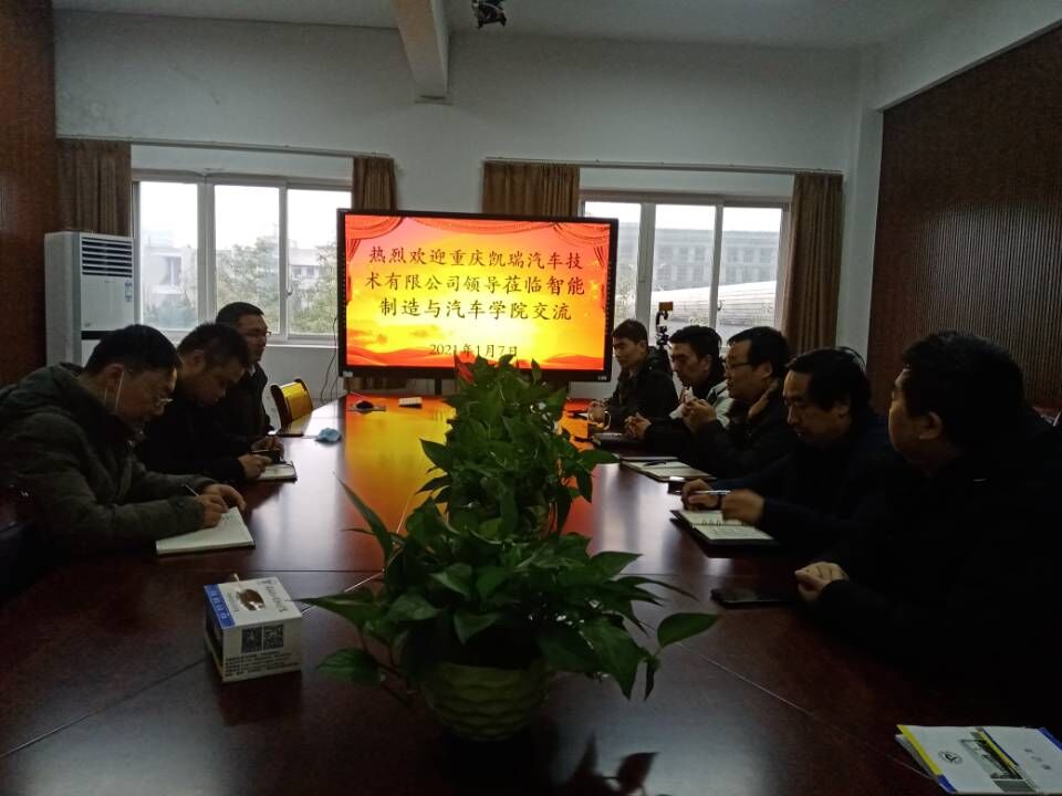 2021年1月7日上午,中国汽车工程研究院股份有限公司重庆凯瑞汽车技术有限公司总经理倪协权一行3人来我校智能制造与汽车学院进行校企合作交流。智能制造与汽车学院院长张进春、书记罗永前、副院长叶勇、学院社会服务科负责人甘守武、张俊峰、智能制造系教师刘竞一参加了此次交流会。