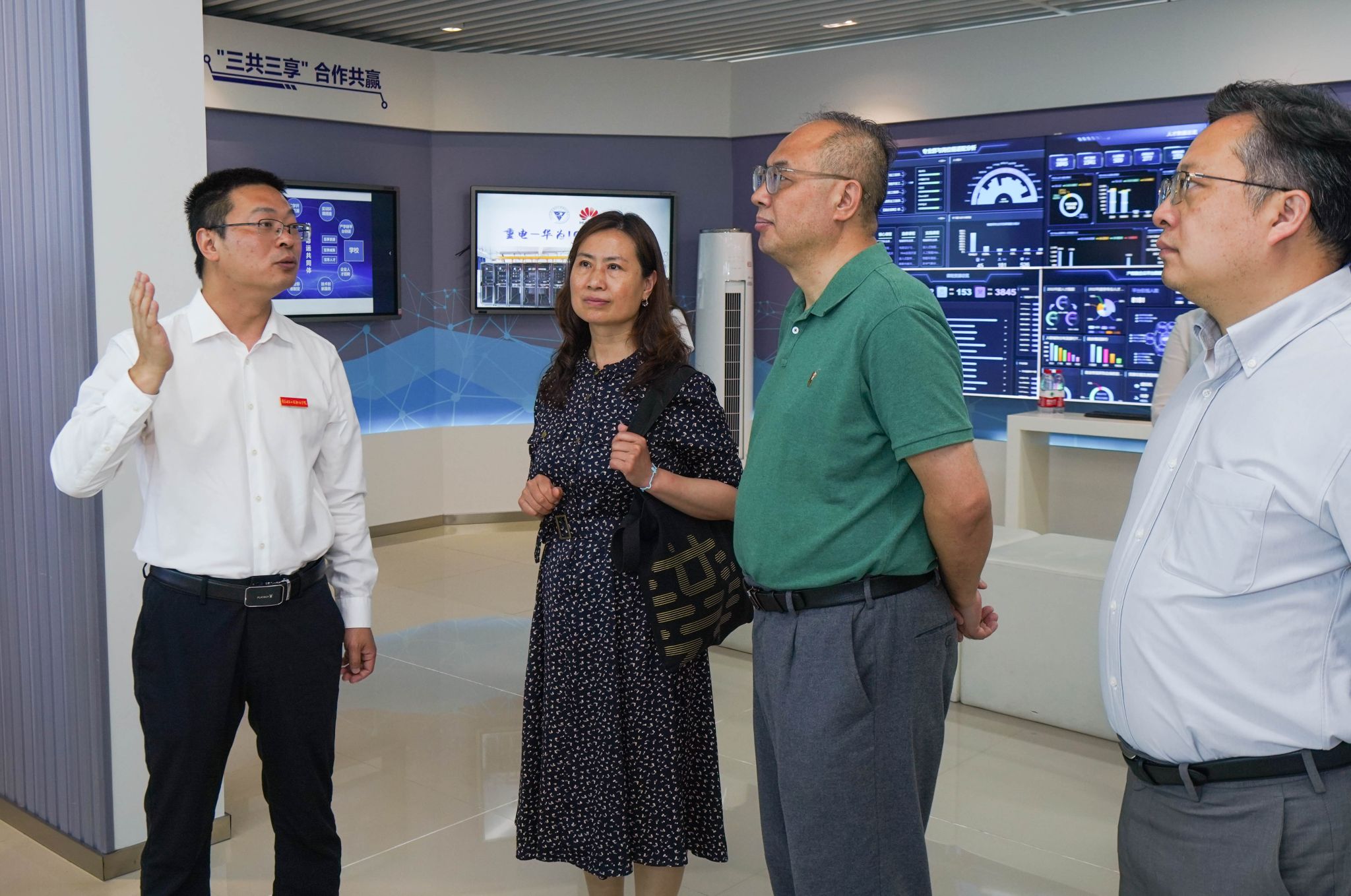 夏娟一行先后参观了人工智能与大数据学院、通信工程学院、电子与物联网学院、通识教育与国际学院,实地了解学校建设发展成就。双方在通识教育与国际学院2307丝路会议室召开工作座谈会,由副校长幸昆仑主持。