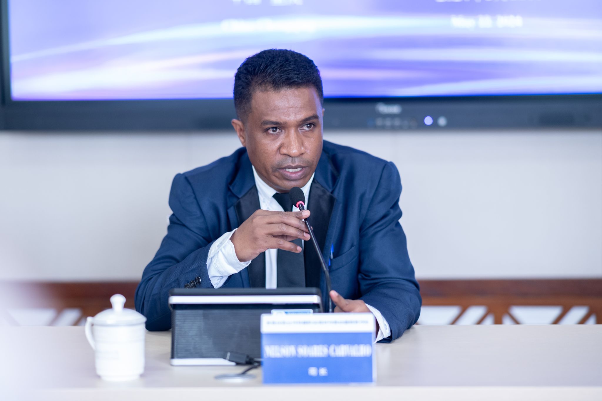 会上,幸昆仑副校长代表学校再次向来访嘉宾表示欢迎。指出,我校长期致力于提升职业教育国际化水平,在响应国家“一带一路”倡议,携手企业“职教出海”的深度实践中已与多所海外高校建立了合作关系,取得了良好进展。表示我校愿在师资互换、留学生联合培养等方面与东帝汶方开展务实合作,共同提升两国职业教育水平。