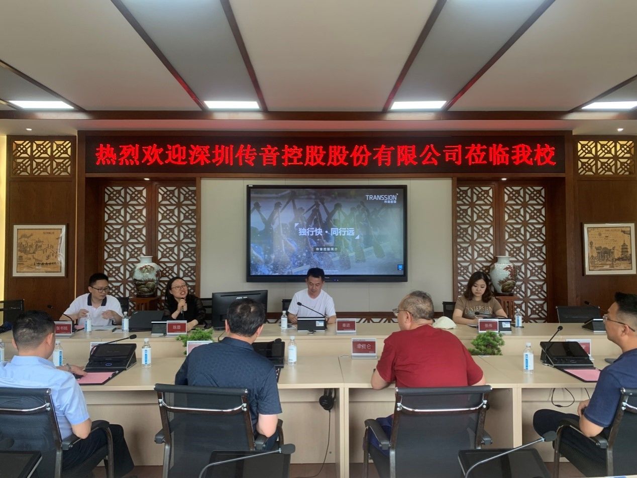 2024年5月21日上午,深圳传音控股股份有限公司研发测试部副总监秦进,人力资源中心总监陈蓉,人力资源中心经理张伟、张书铭一行莅临我校交流。我校副校长幸昆仑,国际交流与合作发展处处长刘宏宇,教务处处长童世华,培训与继续教育学院院长莫绍强,招生就业处副处长邓小龙,人工智能与大数据学院党总支副书记张铁力,电子与物联网学院副院长熊德明,通信工程学院办公室主任赵艳梅等参加会议。