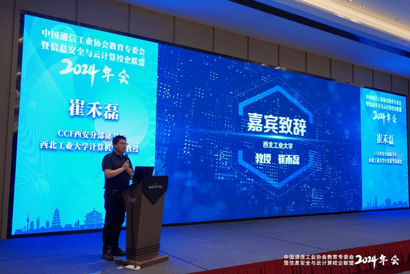在会议的开幕式上,西北工业大学计算机学院的崔禾磊教授,作为CCF西安秘书长,发表了精彩致辞,对教育的未来充满期待,并强调了长江经济带产教融合发展联盟在产教融合方面起到的关键作用。