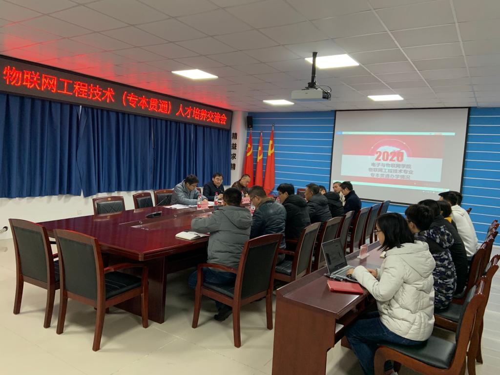 12月10日下午,为贯彻《教育部国家发展改革委财政部关于引导部分地方普通高校向应用型转变的指导意见》(教发〔2015〕7号)和《重庆市教育委员会关于开展普通本科高校与高职专科院校贯通分段培养智能产业高端技术技能型人才试点工作的通知》(渝教招发〔2017〕22号)精神,确保专本贯通“3+2”开云电子平台_开云(中国)试点工作取得预期成效,培养德、智、体、美全面发展,适应物联网工程学科发展和行业需求,具备“大思政”育人格局,具备良好的自然科学基础与工程素养、专业理论基础、专业实践能力、职业综合能力与创新创业能力的高级应用型工程技术人才,电子与物联网学院接待了来访的重庆科技学院智能技术与工程学院都进学书记一行,共同开展物联网工程技术(专本贯通)专业开云电子平台_开云(中国)交流会。重庆科技学院智能技术与工程学院党总支都进学书记、院长助理周伟博士等一行3人,电子与物联网学院党总支书记张红斌教授、院长陈良教授、信息工程系主任徐小辉教授、物联网应用系主任徐欣副教授以及相关专业主任、骨干教师、专本贯通班学生代表参加了此次交流会。