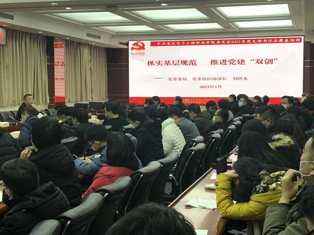2021年1月7日下午,学校党委召开2021年党建示范创建和质量创优工作推进会暨基层党务工作培训会,传达上级最新会议精神,对学校党建“双创”工作进行再动员、再部署、再推进。学校党委书记孙卫平,党委副书记龚小勇,全体党总支书记、专职组织员、党支部书记参加了会议。会议由党委委员、党委组织部部长刘洪光主持。