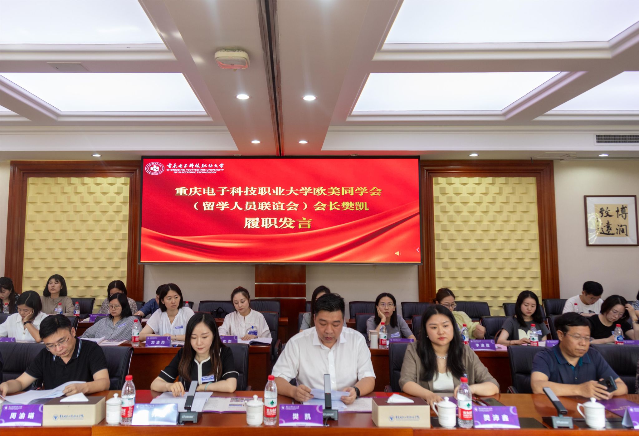 新当选的欧美同学会第一届理事会会长樊凯博士代表班子作履职发言。他对学校党委及欧美同学会全体会员的信任表示感谢。他表示,将带领会员继续弘扬留学报国、爱国荣校传统,充分发挥班子的桥梁作用,把学校归国留学人员紧密团结在学校党委的周围,继续加强自身建设、做好服务工作,带领学校欧美同学会汇聚合力、乘势而上。