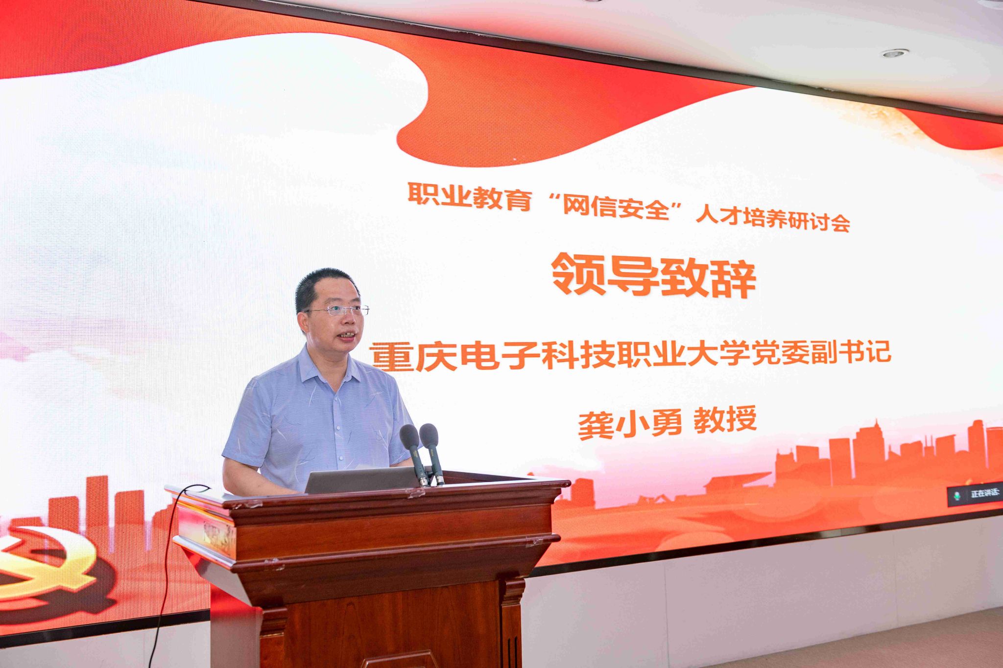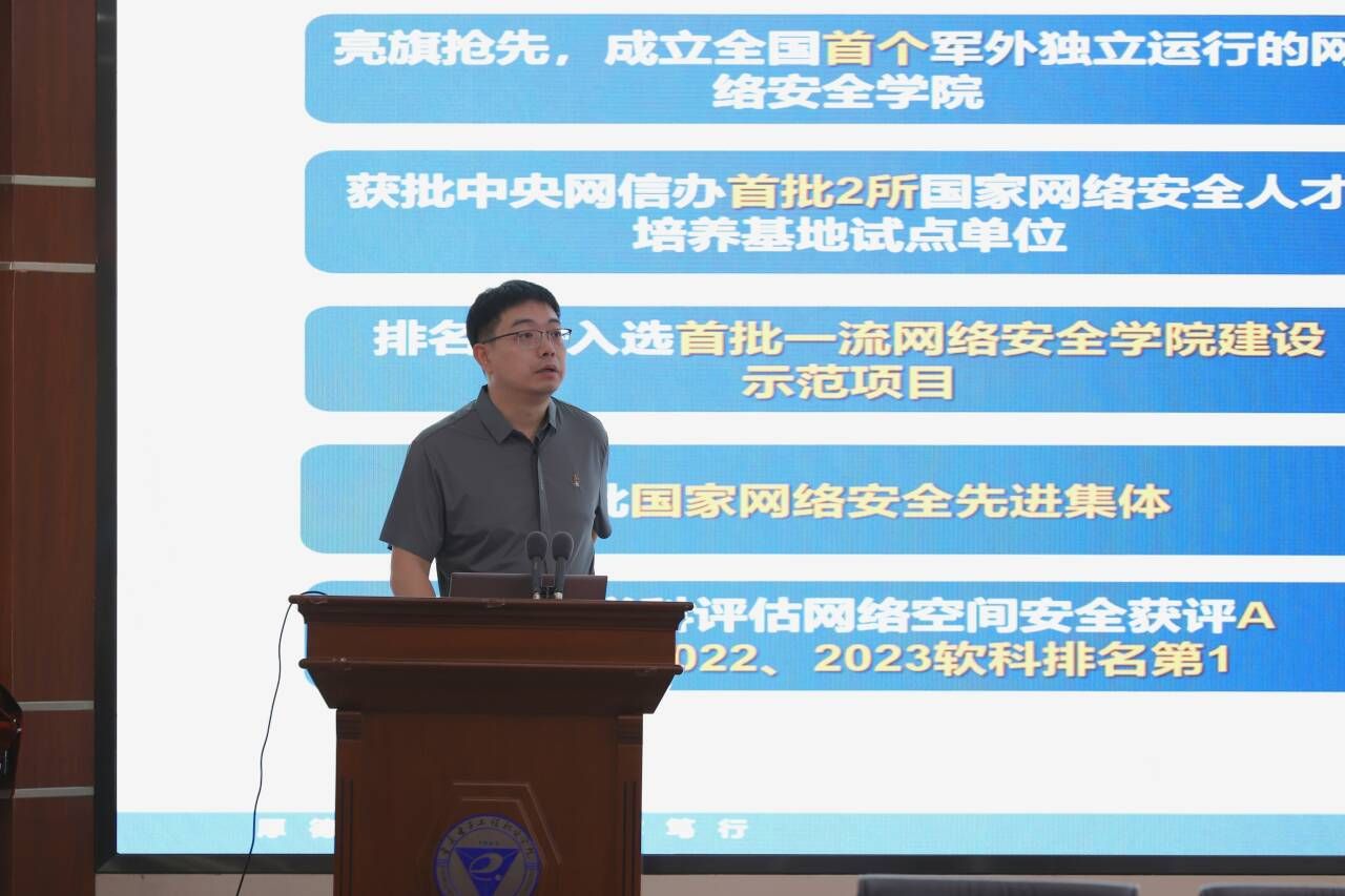 龚小勇副书记代表学校致辞。他提出,党的十八大以来,以习近平同志为核心的党中央高度重视网信开云电子平台_开云(中国)工作,提出了一系列新思想、新观点、新论断,为新时代网信安全开云电子平台_开云(中国)和建设提供了根本遵循。学校深入学习领会、全面贯彻落实,注重发挥“电子信息”办学特色优势,深耕网信安全开云电子平台_开云(中国),积极服务成渝地区双城经济圈建设,推进实施国家教育数字化战略行动,助力数字中国建设。近年来,学校以“可信计算”为特色,打造信息安全技术应用国家级高水平专业群,建立了多个技术研发与创新平台,并与多家机构和企业合作,取得了显著成绩。作为重庆市第一所公办本科层次职业学校,学校将继续深化合作,培养高质量的网信安全人才,推动数字经济产业发展,并全面推进本科层次职业学校建设,为现代职业教育体系构建和高质量发展贡献力量。
