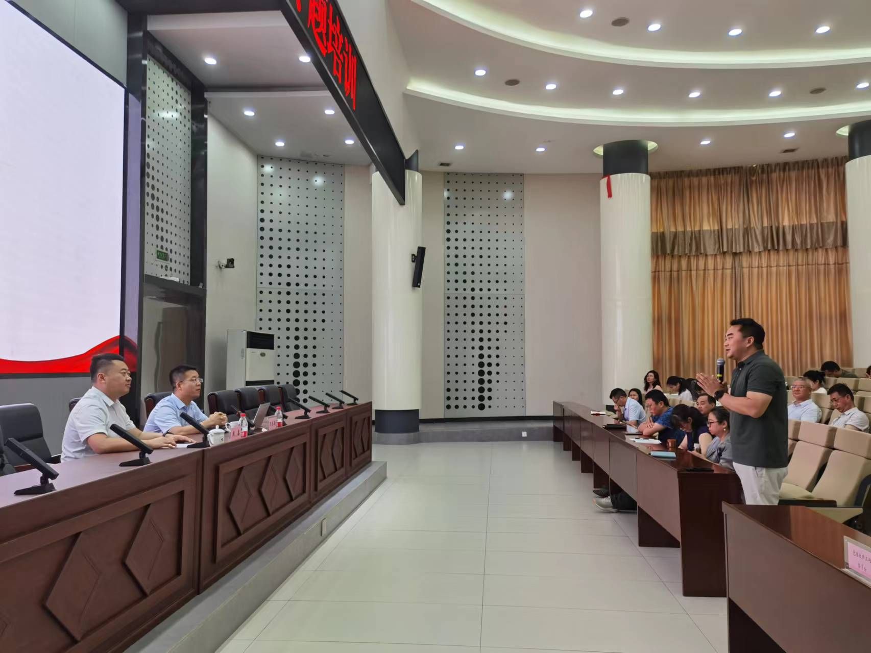 培训采取专题讲座的方式进行,为期半天。两江地区人民检察院党组成员、副检察长王东海博士应邀作《以自身学“德” 育祖国花朵》专题报告。他以师德建设为主线,用大量鲜活的案例,从身边犯罪、师德师风、职责担当和风险防范四个方面为参训人员带来了一场精彩的“普法课”“修养课”,进一步提升了参训教职工对“不越道德底线、不碰纪律红线、不触法律高压线”的思想认识和行动自觉,受到广泛好评。同时,讲座结束后,还进行了现场答疑解惑,氛围活泼热烈。讲座由党委教师工作部部长、人力资源处处长周鑫主持。