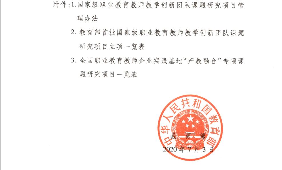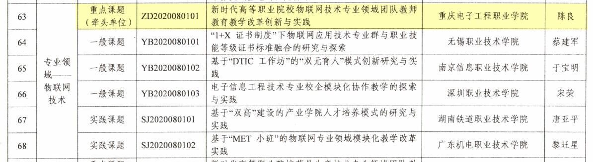 近日,《教育部关于公布首批国家级职业教育教师教学创新团队课题研究项目的通知》(教师函[2020]3号)下发,电子与物联网学院《新时代高等职业院校物联网技术专业领域团队教师教育教学改革创新与实践》成功立项重点课题,并为该领域牵头单位。