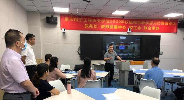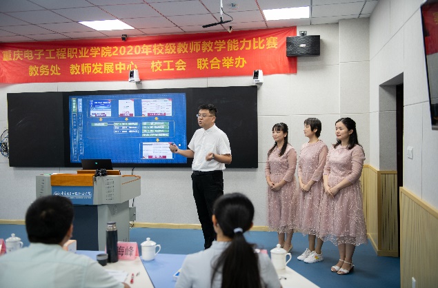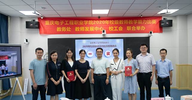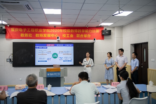 2020年7月13日,学校在智慧教室14301举行教师教学设计能力比赛第二阶段现场决赛。本次比赛特邀嘉宾分别是重庆高等职业技术教育研究会会长及国家督学成员张亚杭教授、重庆电子工程职业学院校长聂强教授、副校长龚小勇教授、教务处副处长赖先志、人力资源处副处长邓小龙、校工会主席唐莉;线上远程评审专家分别是2018年全国职业院校教学能力比赛物联网实训赛项一等奖第一名获得者潍坊工程职业学院的王金龙老师、2019年全国职业院校技能大赛教学能力比赛一等奖获得者浙江金融职业学院的陆妙燕老师、浙江工商职业技术学院的王璞老师;现场评审专家分别是重庆交通大学李海峰教授、重庆大学万曼璐博士、2018年全国职业院校教师教学能力比赛一等奖获得者湖南汽车工程职业学院的林崟老师和重庆城市管理职业技术学院的王爽老师。教务处副处长代才莉主持本次比赛。