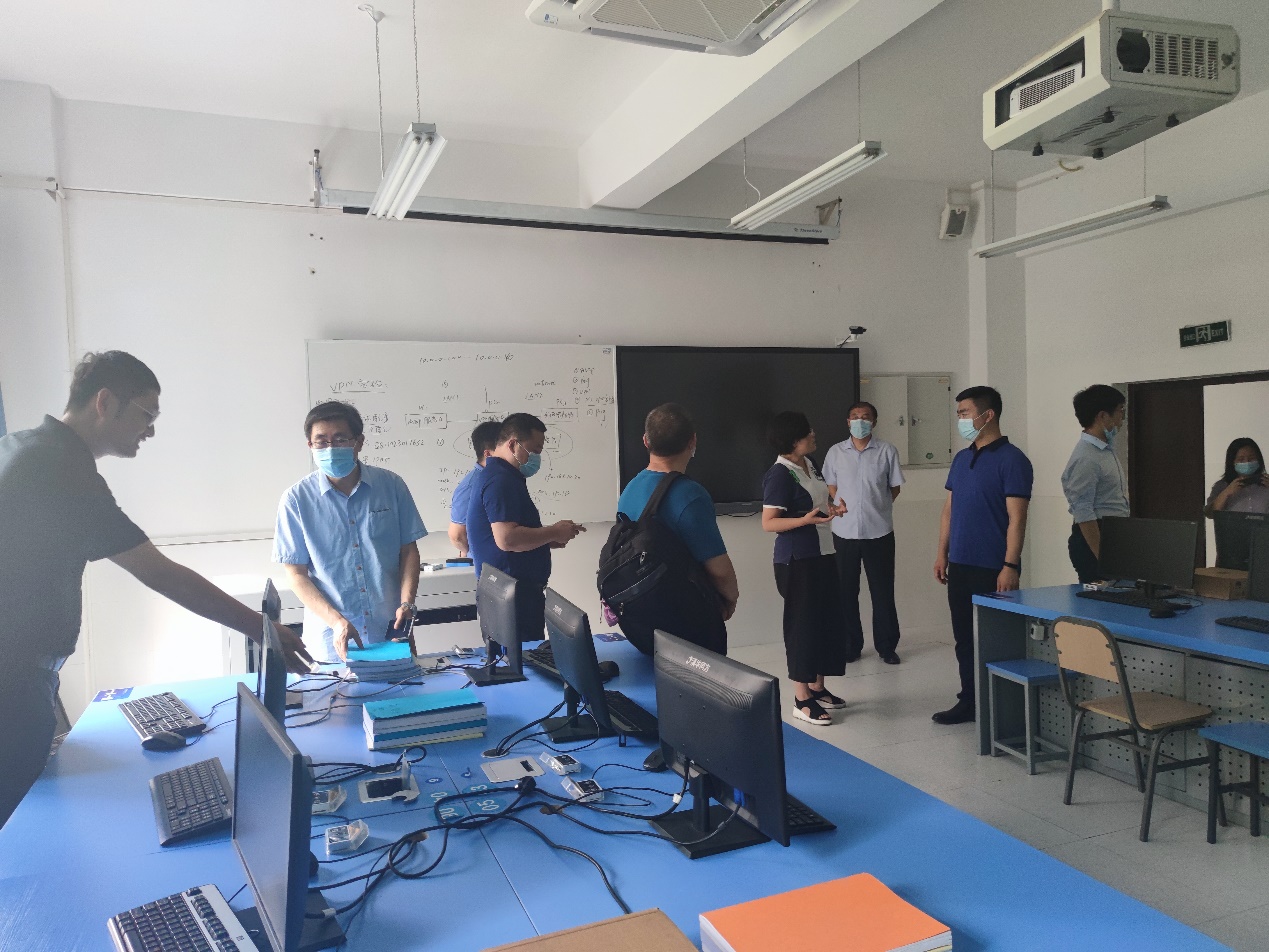 刘成俊副校长首先代表学校对河北软件职业技术学院的到访表示了欢迎,并向来宾介绍了我校的师资、学生等基本情况,以及学校在科研、社会服务等方面的成果。乔哲副校长就河北软件职业技术学院的情况也作了简要介绍,并希望在产教融合和校企合作等相关方面进行深入沟通和交流。陶亚雄院长向来宾分享了我校与华为技术有限公司在开展校企合作、专业与课程建设、开云电子平台_开云(中国)等方面的做法与经验,并与来宾就双高建设、1+x培训及认证、产学研用社会服务等方面进行了深度的探讨。来宾们对于我校取得的各项成果给予了高度评价,并对此次交流探讨表示了由衷的感谢。座谈前,来宾们还参观了通信工程学院智慧创新中心和通信工程学院实训室。