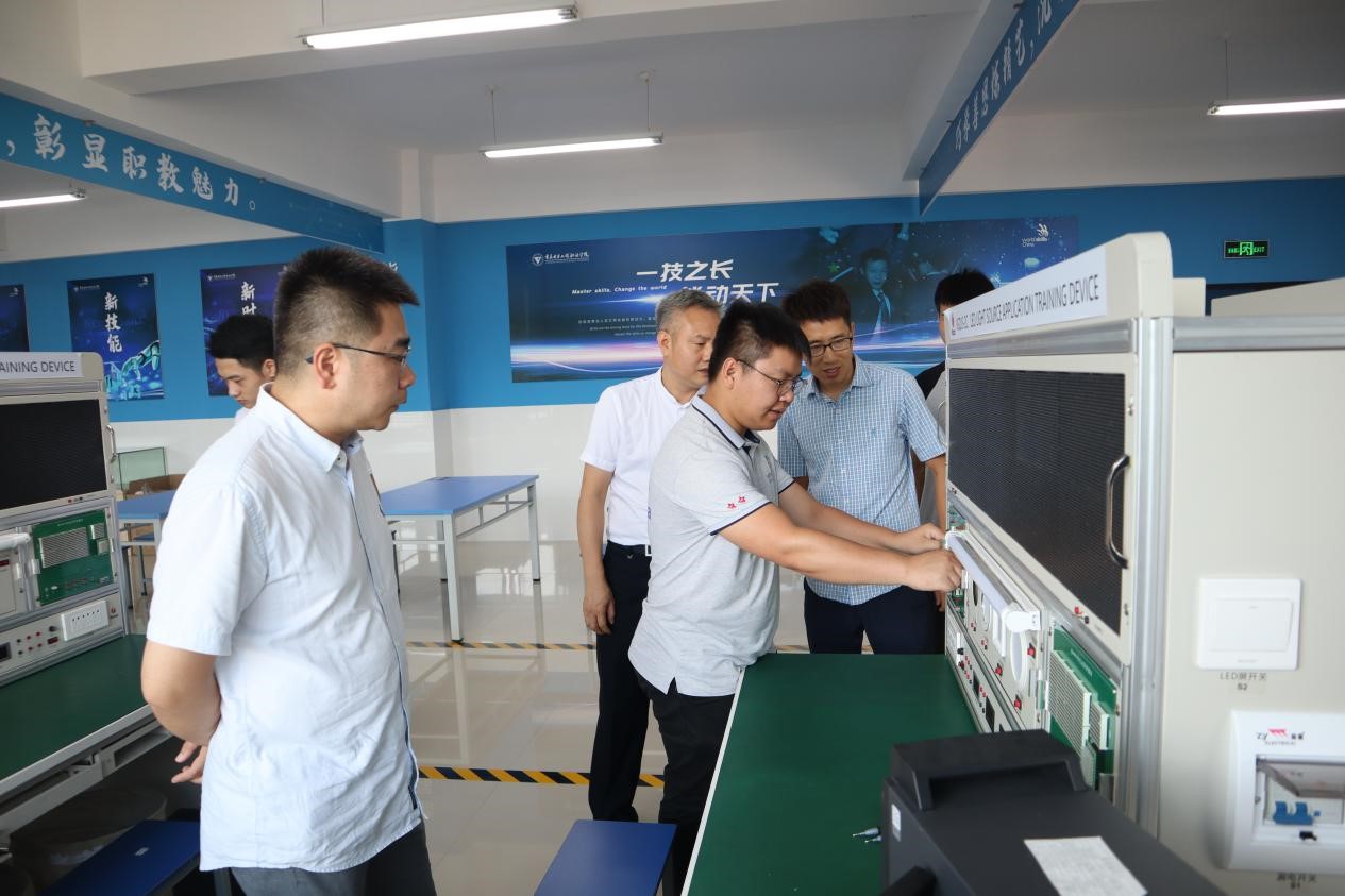 7月3日,世界技能大赛冠军梁攀及电子技术国训基地负责人周振瑜等专家莅临我校光电技术集训基地指导工作。