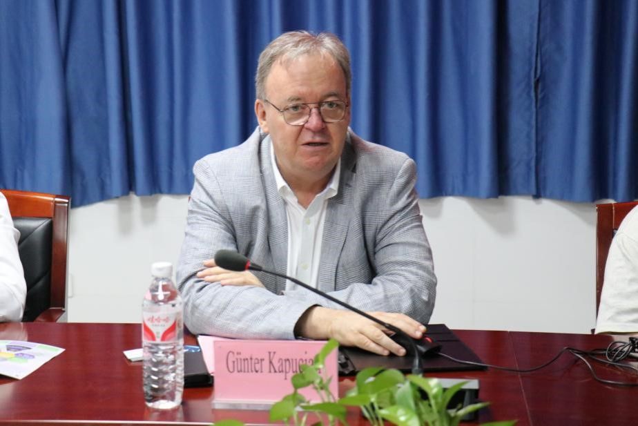 世赛光电首席专家Günter Kapucian介绍了自己任职的奥地利HTL Modling中等职业学校。该校作为奥地利最大的中等职业学校之一,内设12个学院,包含机电一体化、电机工程等工科学院。Günter Kapucian从学校历史、办学规模、专业建设、学生升学就业等方面对学校进行了详尽的介绍。刘影副处长与Günter就两校交换生留学、合作办学等教育合作进行了可行性的探讨。