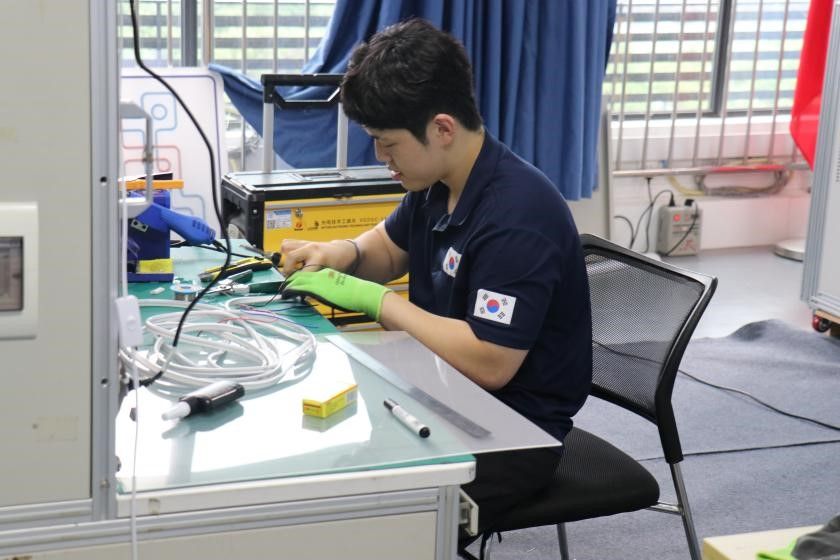 图9 韩国选手正在制作户外LED灯带