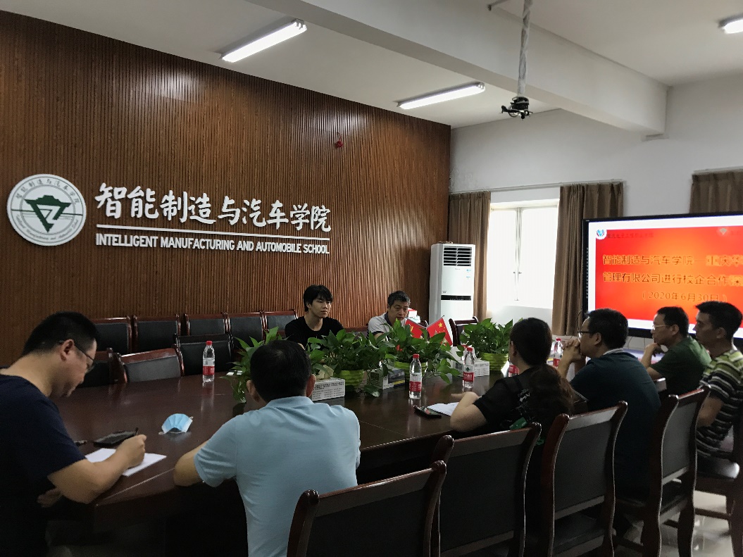 6月30日上午,重庆华末企业管理有限公司董事长冷必相率队到访智能制造与汽车学院,张进春院长和叶勇副院长热情接待了代表团一行,自动化系主任吴德明、副主任尹玲及相关专业教师参加会议。双方就进一步深度校企合作问题,进行了比较深入地洽谈和交流。