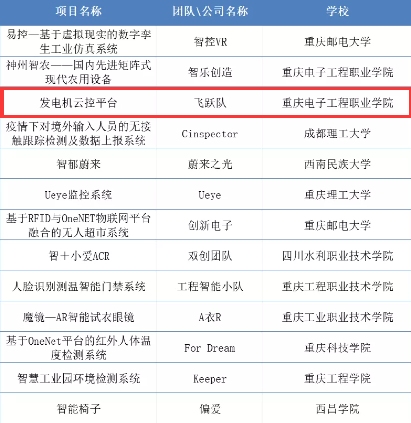 重庆市“双城青才计划——智汇青春”大学生创客大赛决赛名单