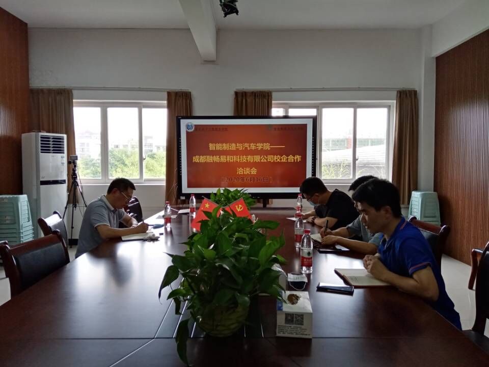 2020年6月16日,成都融畅易和科技有限公司总经理谭柯一行到访重庆电子工程职业学院智能制造与汽车学院就汽车制造与装配专业进行了校企合作洽谈。智能制造与汽车学院张进春院长代表学院对来宾的来访表示了热情的欢迎。参加此次交流的还有学院汽车制造与装配专业主任张俊峰、教师刘竞一、谢吉祥。