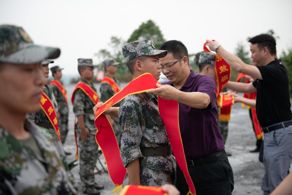 随后,在与会人员热烈的掌声之中,与会领导为入伍学生代表佩戴绶带。