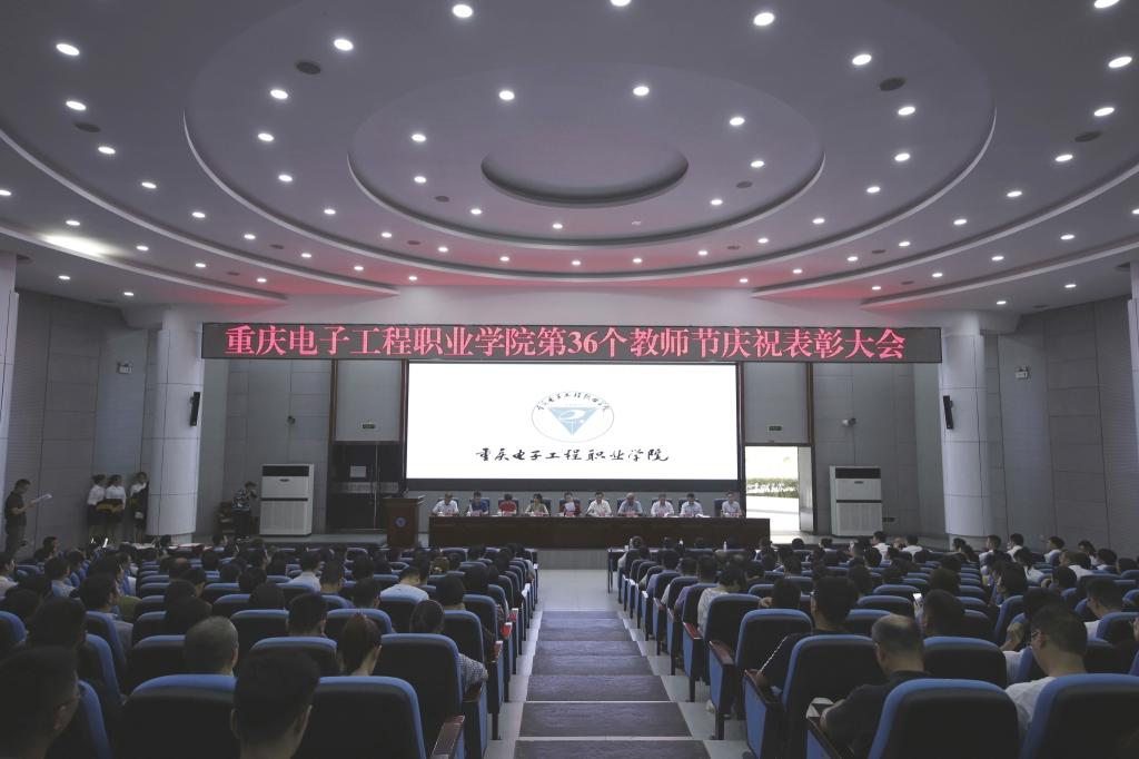 9月10日下午三点,重庆电子工程职业学院庆祝第36个教师节暨表彰大会在博远厅召开,校领导班子全体成员出席大会并颁奖。受表彰的个人、各部门负责人、教师代表等参加了表彰大会。大会由谢义华副校长主持。
