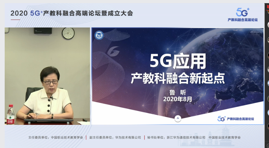 成立大会上,中国职业技术教育学会会长、教育部原副部长鲁昕和华为全球技术服务部总裁汤启兵先后致辞,祝贺5G+产教科融合高端论坛成立。