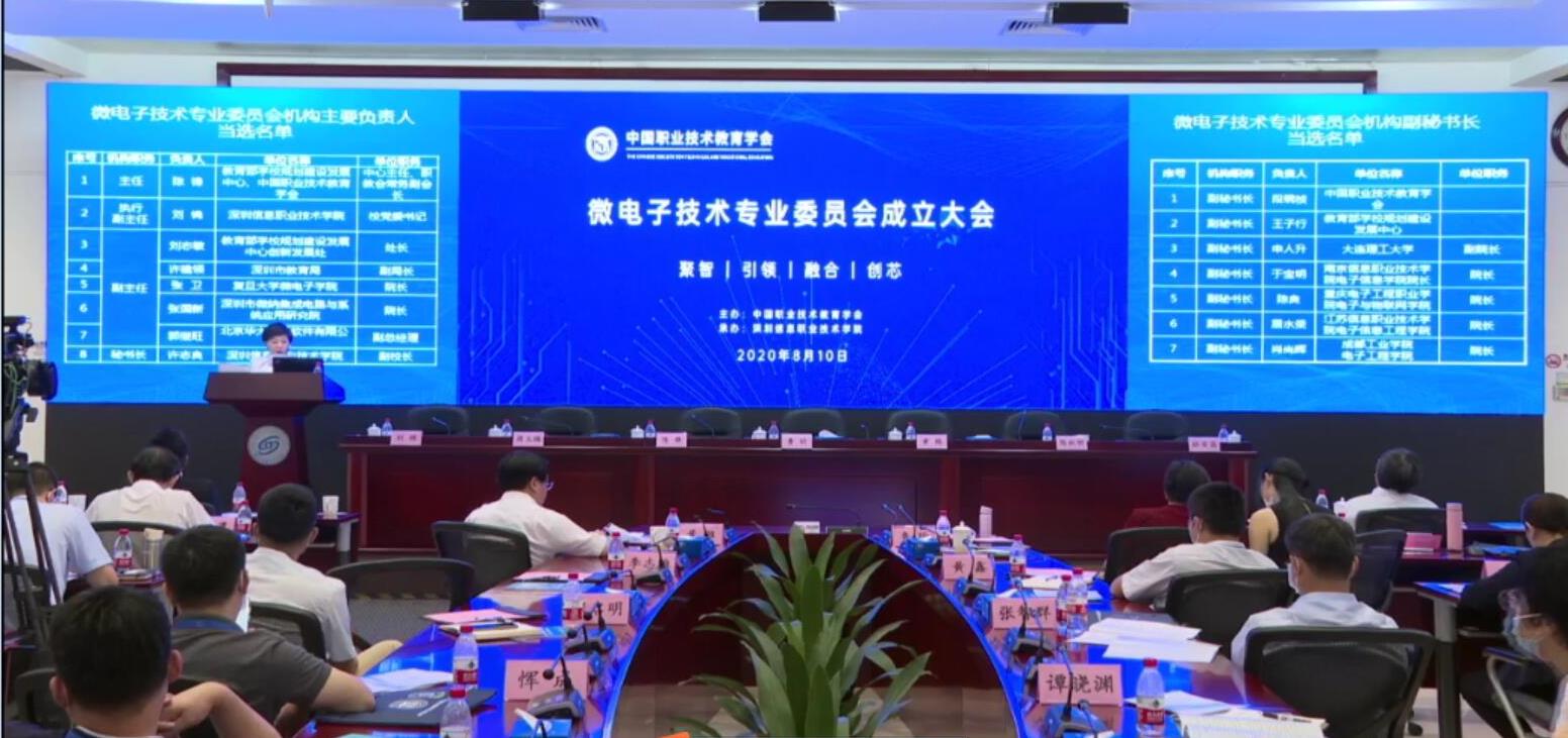8月10日上午,电子与物联网学院院长陈良教授带领微电子技术专业刘睿强、林涛、马岗强、卢静等老师在线参加了深圳信息职业技术学院举办的中国职业技术教育学会微电子技术专业委员会成立大会。
