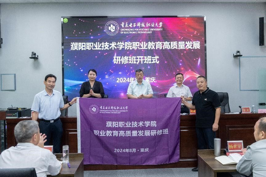 8月7日,濮阳职业技术学院职业教育高质量发展研修班开班式在我校国培基地博学厅举行。濮阳职业技术学院党委书记邓德华教授,教育部全国职业学校校长培训重庆基地办主任、开云电子平台_开云(中国)职教师资培训学院书记兼院长莫绍强教授,开云电子平台_开云(中国)数字媒体学院院长谢永教授,教育部全国职业学校校长培训重庆基地办副主任张亚,以及来自濮阳职业技术学院的35名中层以上领导干部参加开班式。开班式由濮阳职业技术学院党委委员、副校长侯秀安主持。