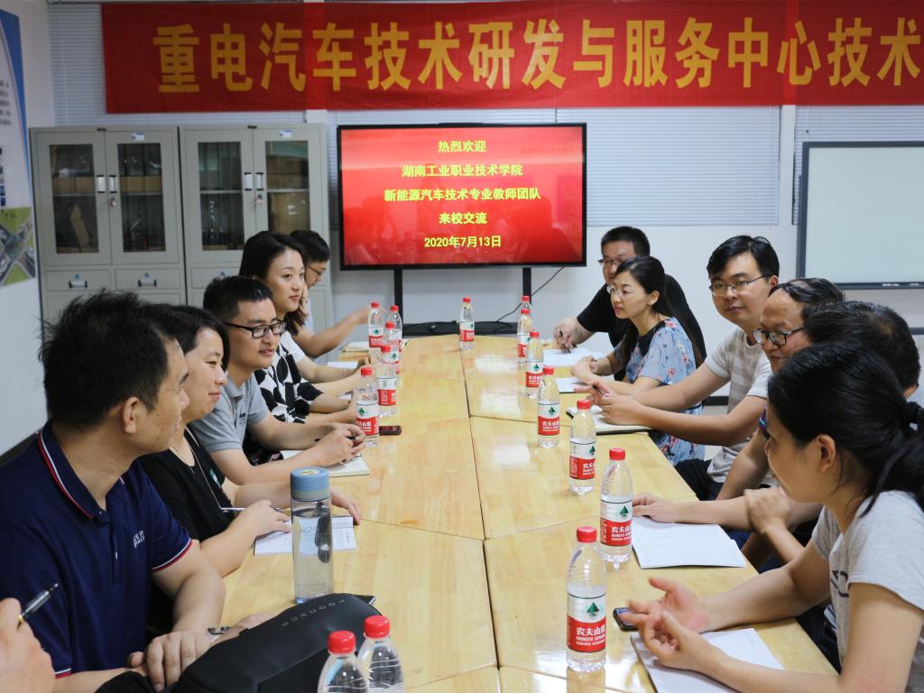近日,湖南工业职业技术学院新能源汽车技术专业教师团队一行八人到访我校智能制造与汽车学院,就新能源汽车技术和汽车智能技术专业建设的相关内容进行了深入的交流研讨。汽车工程系主任王勇代表学院对来宾到访表达了诚挚的问候和热情的欢迎。我校参加此次交流研讨会的有汽车工程系陈世江、徐跃进、陈清洪等相关教师。