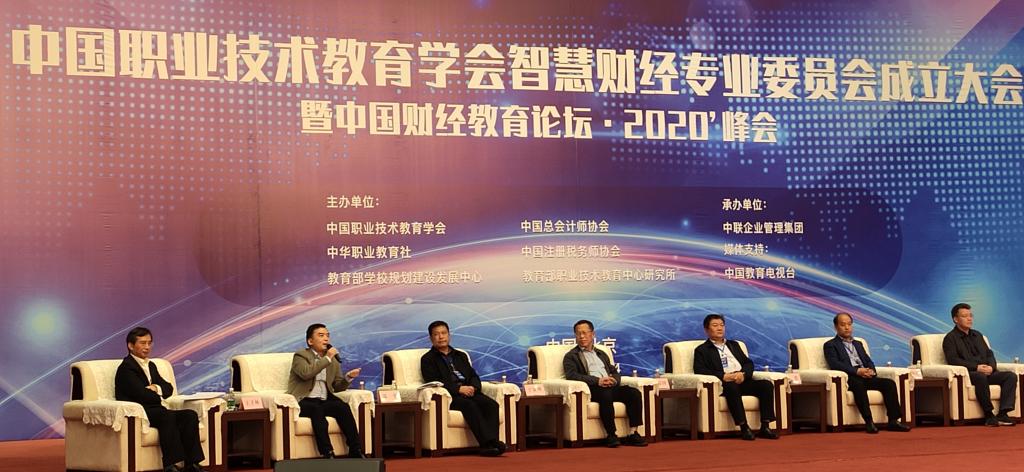 中国职业技术教育学会智慧财经专业委员会成立暨中国财经教育论坛.2020峰会于10月23日-24日在北京举行,本次论坛由中国职业教育社、中国职业技术教育学会、教育部学校规划建设发展中心、中国高等教育学会高等财经教育分会、中国总会计师协会、中国注册税务师协会联合主办,中联企业管理集团承办,中国教育电视台、内蒙古广播电视台提供媒体支持。我校聂强校长受邀出席圆桌论坛并作典型经验发言。