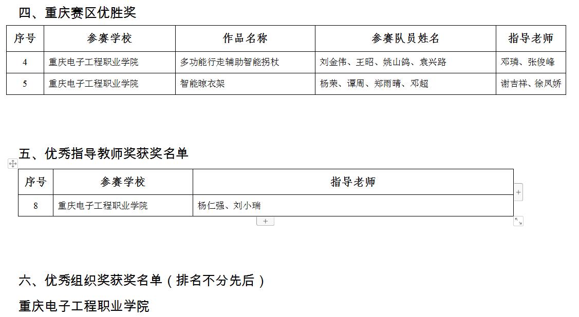 近日,重庆市教育委员会发布《关于第九届全国大学生机械创新设计大赛重庆赛区获奖情况的通报》(渝教高发〔2020〕21号),本次竞赛全市有17所参赛学校的105个参赛队参赛。我校参赛队获得一等奖1项、二等奖2项、3等级1项、优胜奖2项。同时,我校教师杨仁强和刘小瑞获得“优秀指导教师”称号,我校获得“优秀组织奖”。