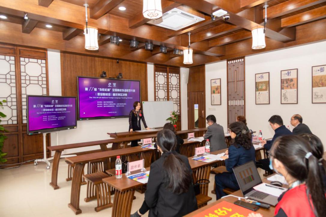 2020年10月18日,由重庆市教委主办,重庆电子工程职业学院和上海外语教育出版社承办、重庆市高等教育学会和重庆市外文学会协办的第十一届“外教社杯”全国高校外语教学大赛(职业院校组)重庆赛区决赛暨颁奖典礼在重庆电子工程职业学院举行。颁奖典礼由重庆电子工程职业学院通识教育与国际学院院长沈雕主持,重庆市教委高教处李翔,上海外语教育出版社副总编谢宇,重庆电子工程职业学院副校长龚小勇、教务处处长王正勇、通识教育与国际学院党总支书记冉槐、通识教育与国际学院副院长张华敏以及各嘉宾评委出席典礼。