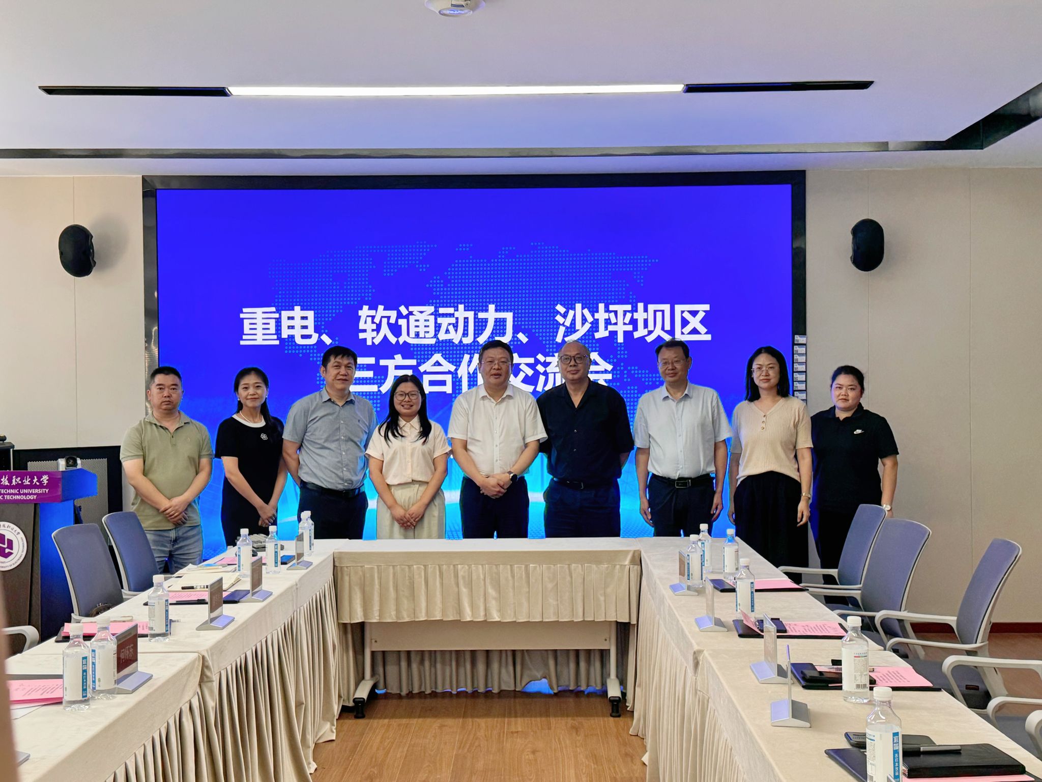 9月13日,学校与沙坪坝区经信委、软通动力集团举行三方座谈,深入探讨校企合作新模式,促进产教深度融合,共谋未来发展。沙坪坝区经信委主任何怀东,招商投资促进中心副主任徐琳;软通动力集团副总裁兼技术研究院副院长雒冬梅,副总裁兼西南大区总经理顾泽飞,西南区域业务发展部销售经理张莎;学校副校长幸昆仑,人工智能与大数据学院副院长何欢,国际交流与合作发展处科长甘守武,人工智能与大数据学院系主任黄倩、李红蕾参加座谈。