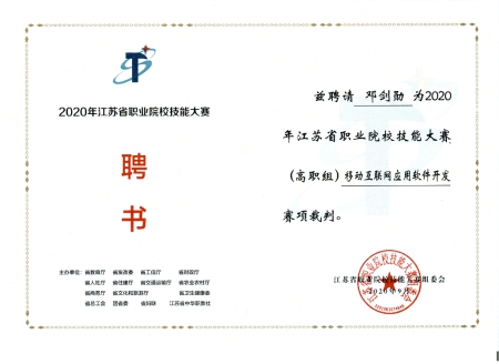 在9月27日—28日举行的全国职业院校技能大赛江苏省选拔赛上,我校人工智能与大数据学院教师邓剑勋教授受江苏省职业院校技能大赛组委会聘请,担任本次大赛决赛裁判员,执裁“移动互联应用软件开发”赛项。