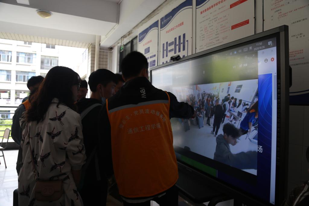 作为一所以电子信息为特色的高等院校,学校的“数字化”还体现在各学院迎新中,通信工程学院师生合作,自主研发的在线直播教育系统,方便家长不进学校也能通过在线直播收看学校情况。