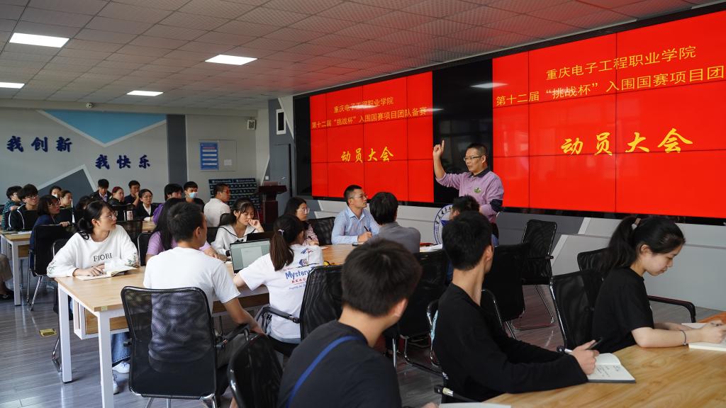 会上,校团委就市赛情况和国赛参赛注意事项作了简要说明,各参赛队伍指导老师和学生就作品内容、准备情况及面临的困难等分别做了汇报。冉学农副校长在动员讲话中首先对积极组织参加“挑战杯”大赛的各个二级学院以及指导老师和参赛队员表示感谢,同时对获得市赛6个金奖、7个银奖、2个铜奖以及4支入围国赛的队伍表示祝贺。他对各个参赛队提出两点希望:一是希望参赛队伍深刻理解时代背景和国家发展方略,紧紧围绕习近平总书记视察重庆讲话精神和重庆市发展智能制造实施方案,认真领会陈敏尔书记打造“智造重镇”、建设“智慧名城”推动重庆高质量发展讲话精神,结合自身专业背景,并整合学校相关专业群优势,积极创新项目,发扬“工匠精神”,精益求精,力争锻造出高水平、高质量的参赛作品;二是希望各参赛队伍继续保持昂扬的斗志和饱满的热情投入到国赛备赛中,希望二级学院和学校相关部门对接下来的比赛给予大力支持,力争取得优异成绩。