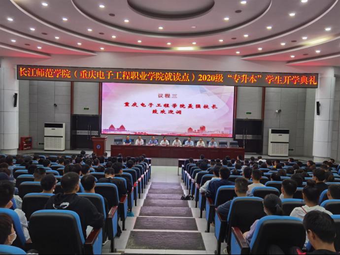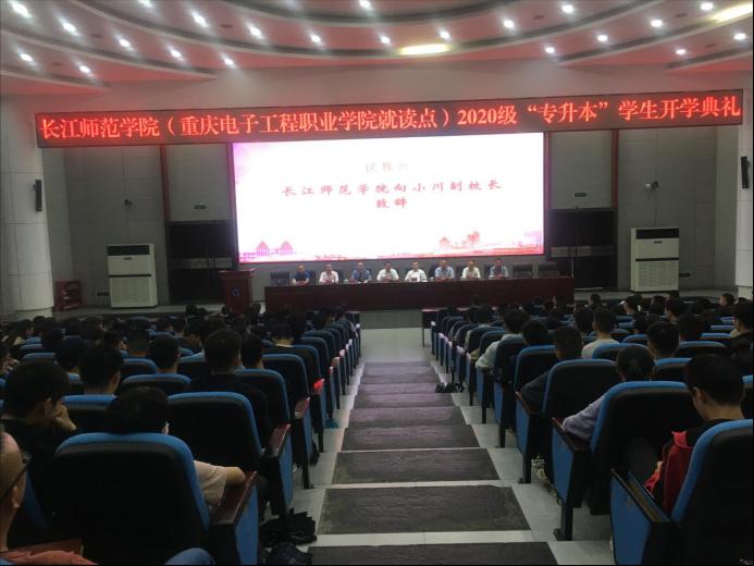 9月22日13:30,长江师范学院(重庆电子工程职业学院就读点)2020级“专升本”学生开学典礼在我校博远厅顺利举行。典礼由龚小勇副校长主持。参加典礼的有:长江师范学院党委常委、副校长向小川、学生处处长王东辉、电子信息工程学院院长李松柏、大数据与智能工程学院院长黄世权、教务处副处长董顺伟及部分专业教师、辅导员;重庆电子工程职业学院校长聂强、副校长龚小勇、副校长冉学农、教务处副处长赖先志、通信工程学院党总支书记曾晓宏、院长陶亚雄、人工智能与大数据学院党总支副书记刘宏宇、副院长童世华、电子与物联网学院党总支副书记毛弋、副院长夏西泉、三个二级学院的教务科长、学管科长、本科班辅导员及全体本科班学生参加了典礼。