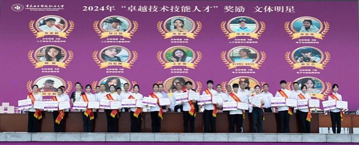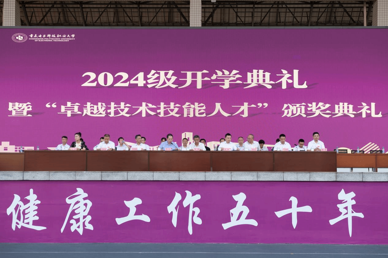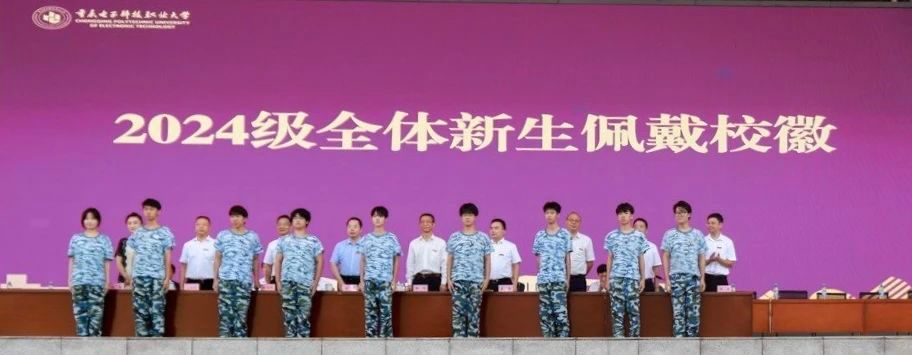 为增强2024级学生的集体荣誉感和归属感,在本次开学典礼暨“卓越技术技能人才”颁奖典礼中,由主席台全体校领导为2024级新生代表佩戴校徽。