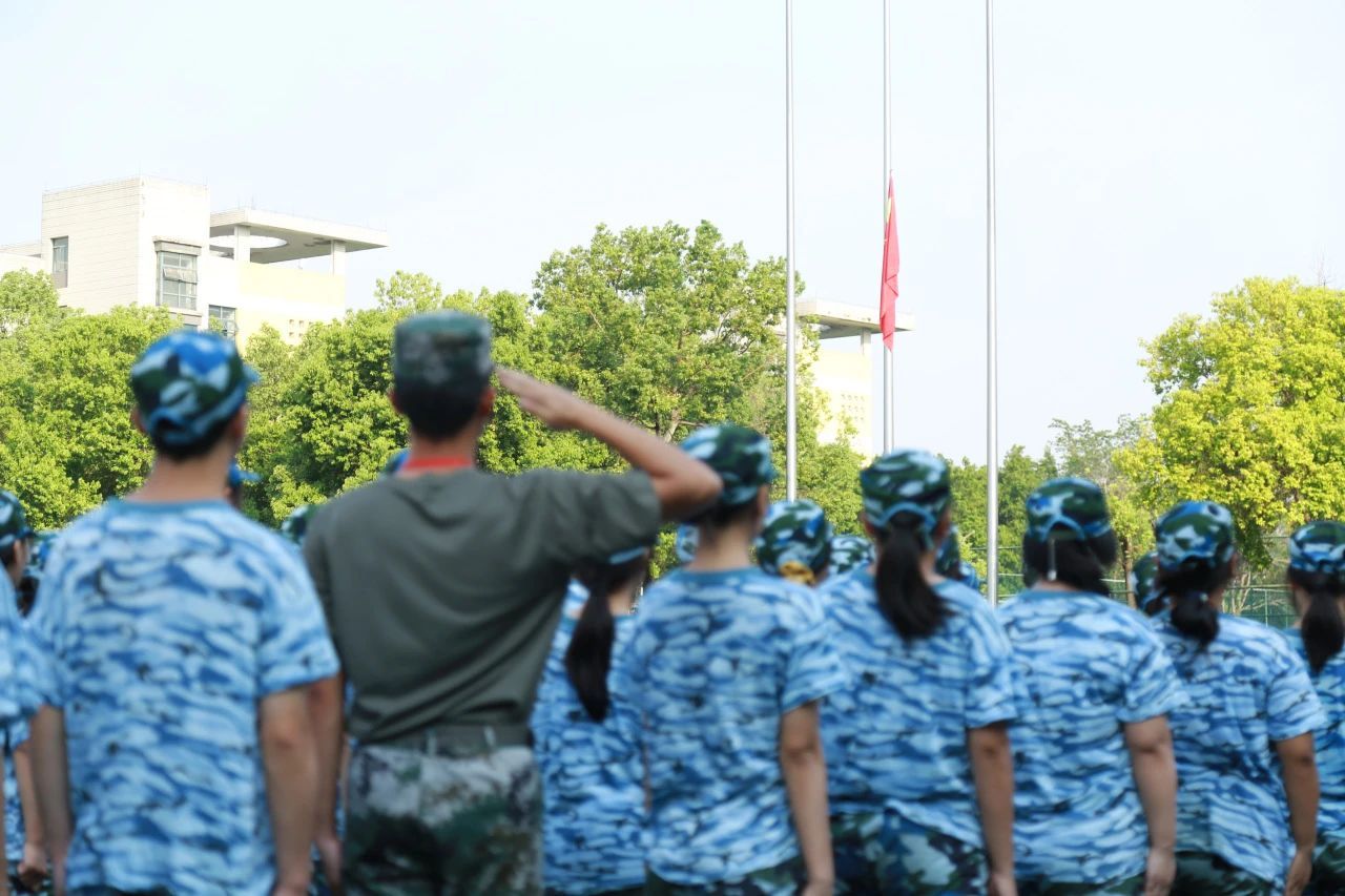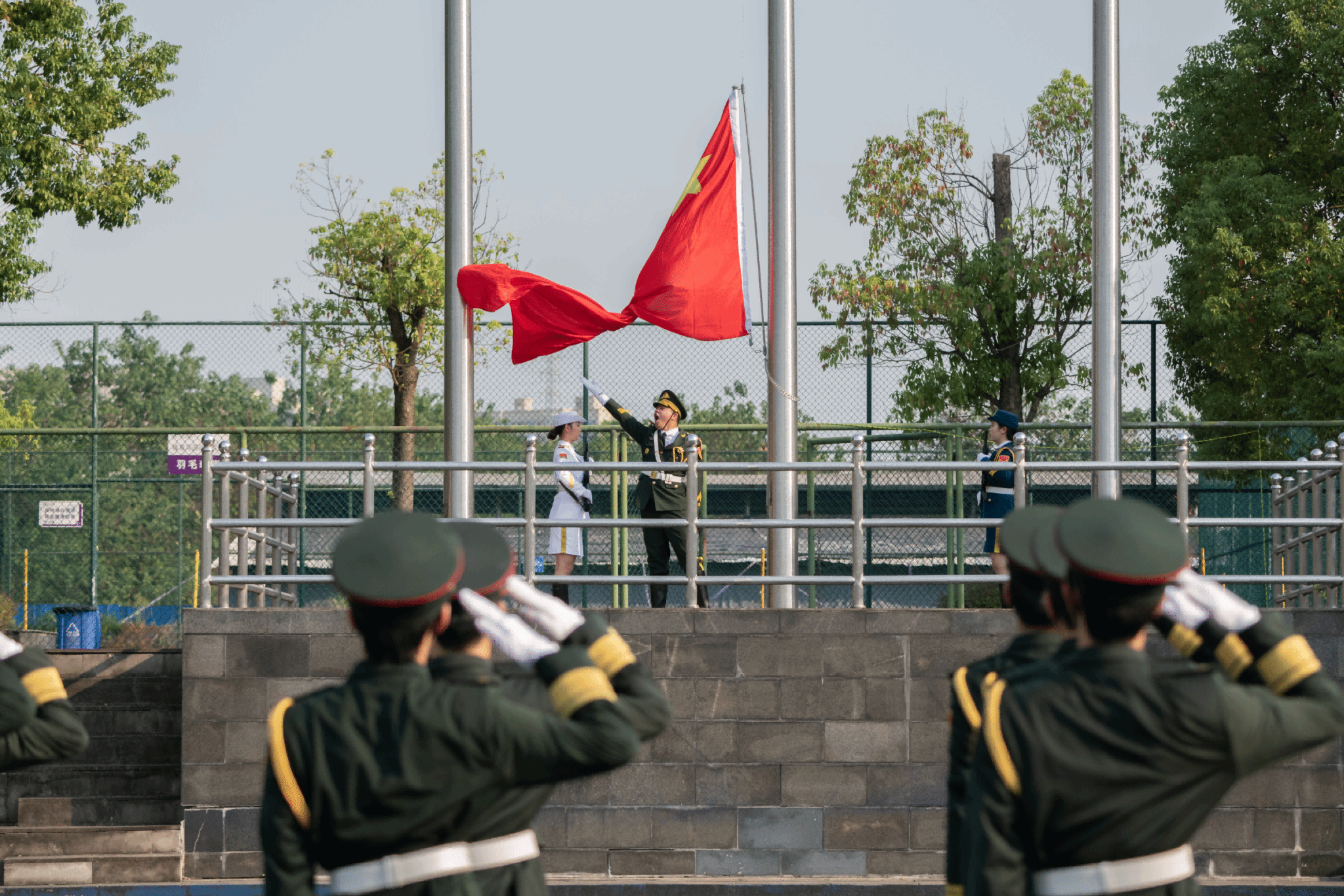 全体师生庄严肃立,向国旗行注目礼