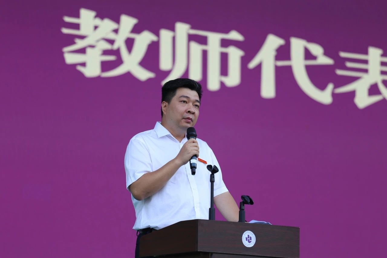 教师代表建筑与材料学院樊凯老师生动、详细地分享了他和学生科研团队从零开始的奋斗历程,及取得了挑战杯、ICAN、中华职教等比赛全国一二等奖的傲人成绩。最后,他鼓励新生载道而行,以昂扬姿态奏响激扬澎湃的青春号角,以满腔热情续写重电人的精彩华章。