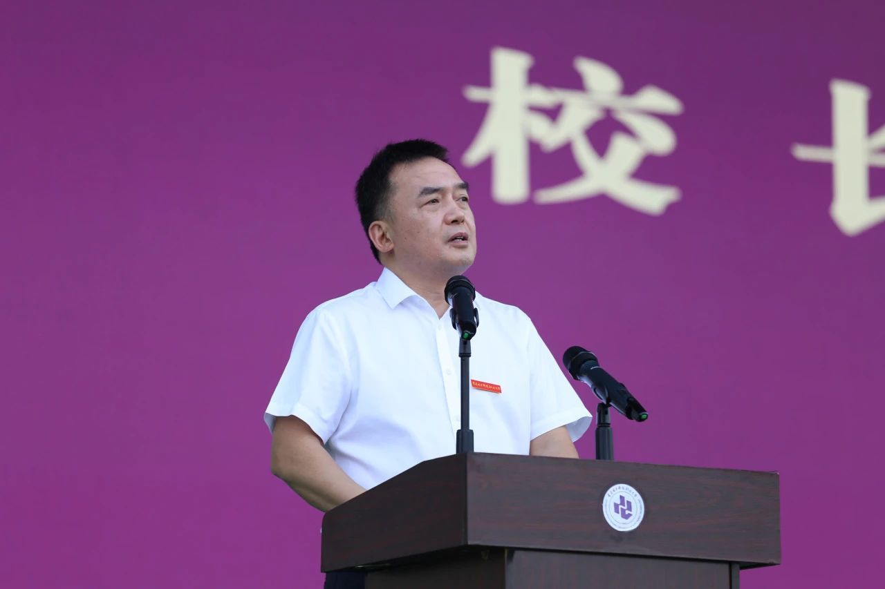 党委副书记、校长聂强从育人机制、师资力量、社会声誉等方面向新生介绍了学校的概况,并谈到本次典礼是学校成功申创本科层次职业大学后举办的第一次开学典礼,实现了数代重电人翘首期盼的“本科梦”。最后,聂强校长勉励新生,一是要重视技术技能提升,善于自我实践;二是要重视自我审视,拓展宽广胸怀;三是要重视勤勉精进,时刻充满希望。