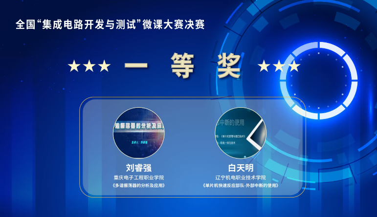 本次大赛历时三个月,历经四个评审环节,最终入围17个优秀微课作品,主要以集成电路相关知识点为教学主题,教学设计充分体现学做一体的职业教育特色。决赛秉持公平公正的原则,从教学设计、目标达成、教学特色、作品阐述及答疑等多方面对17部微课作品进行评分排名,得出本次微课大赛的一等奖、二等奖、三等奖及优胜奖。