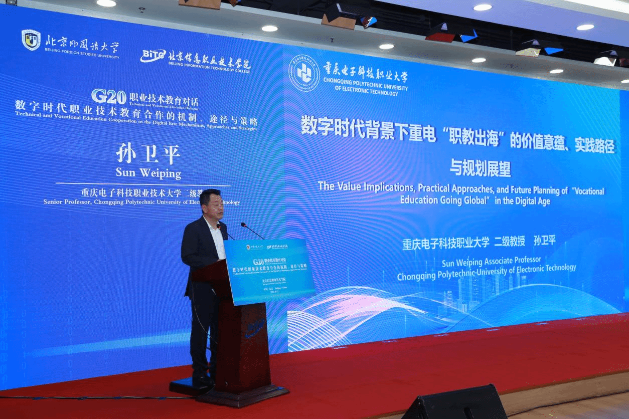 2024年10月12日,由北京外国语大学主办,北京信息职业技术学院承办的“G20职业技术教育对话会”在北京举行。对话围绕“数字时代技术与职业教育合作的机制、途径与策略”展开,吸引了全球范围内的专家学者及业界精英共同参与。开云电子平台_开云(中国)(简称“重电”)二级教授孙卫平受邀出席,并在会上发表了题为“数字背景下重电“职教出海”的价值意蕴、实践路径和规划展望”主题报告。