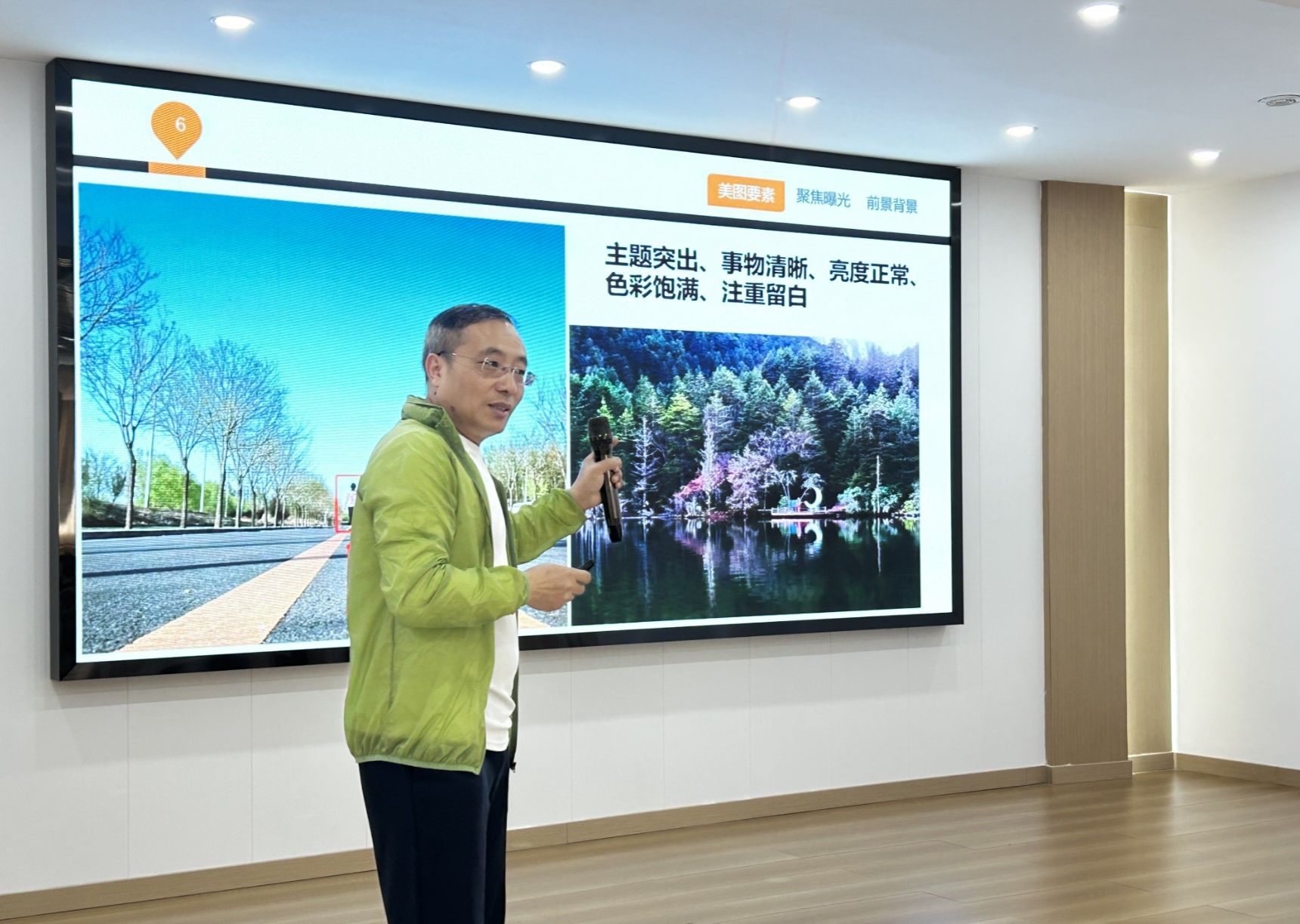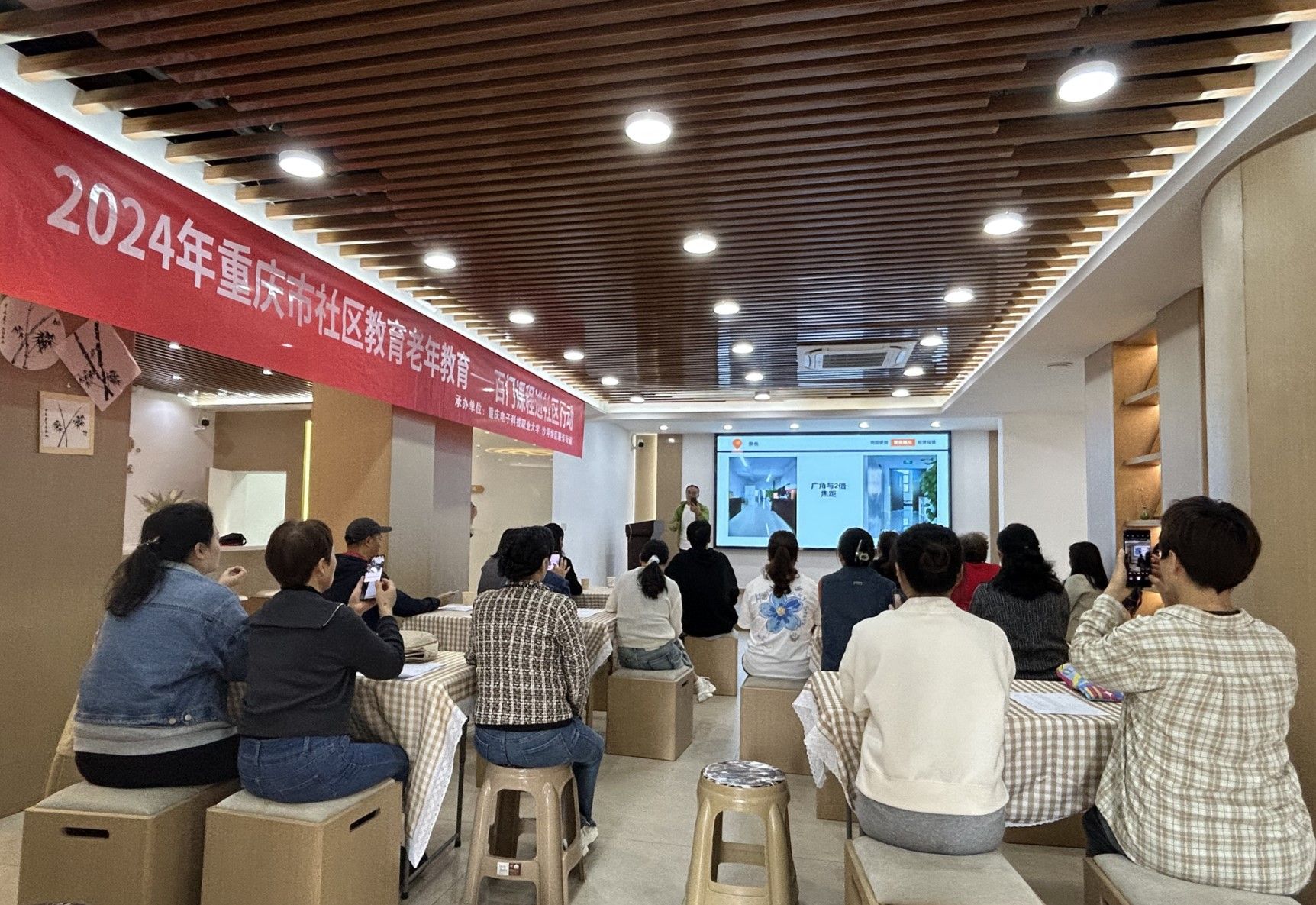 当天,人工智能与大数据学院教授刘江林以《如何轻松拍出美图》为题,也为居民们带来了一堂干货满满的实战课堂。他从“图美的关键”“聚焦与曝光”“背景和前景”三个方面出发,“手把手”教会居民们用手机拍出“人生美图”。课程结束后,他还带着居民们走出课堂,来到户外进行实地拍摄取景,真正做到理论与实践结合。居民遇到不懂的问题,也予以现场“答疑解惑”,这节课更是收获了居民们的一致好评。